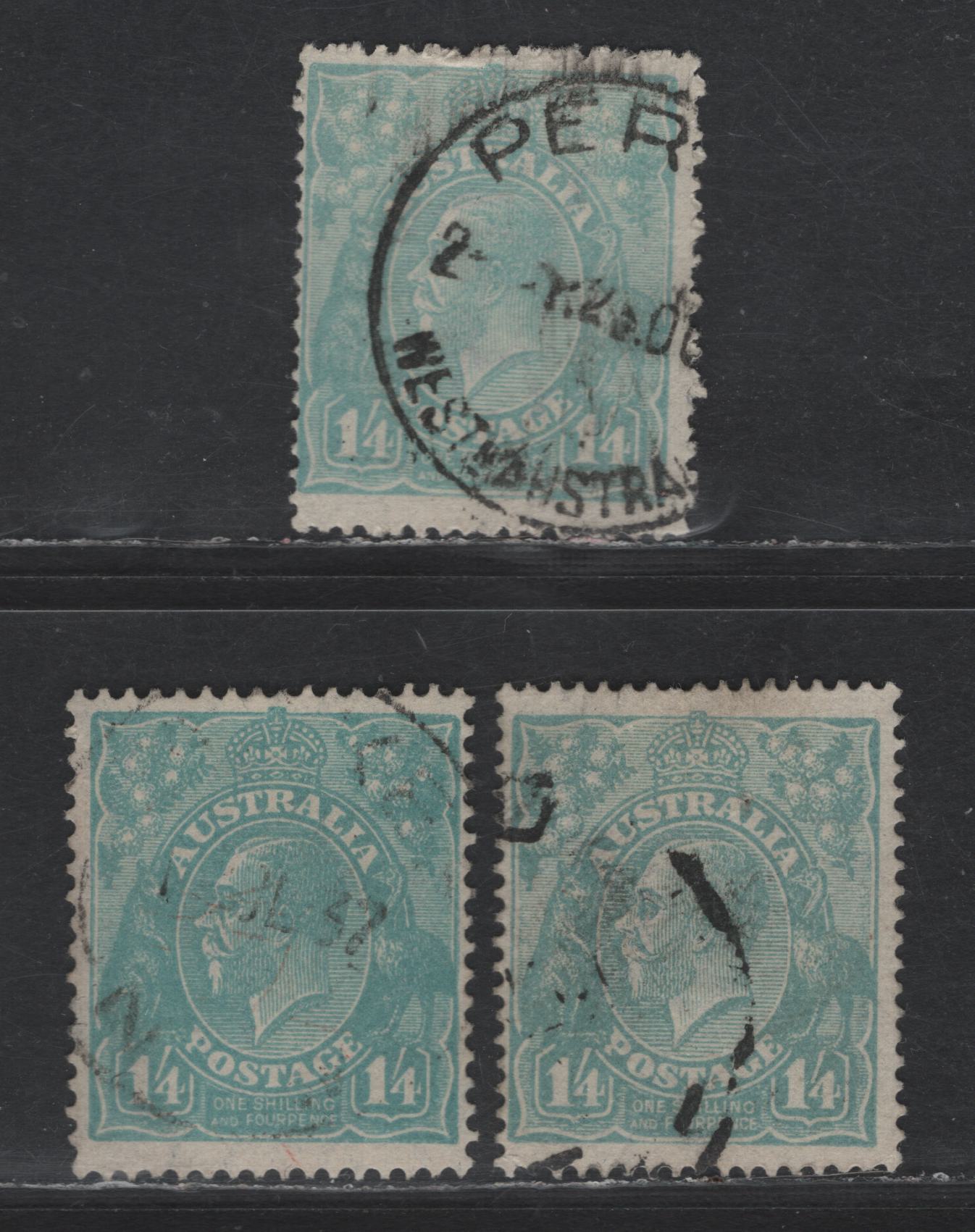 Lot 261 Australia SG#66-a, 131 1/4d Pale Blue, Dull Greenish Blue & Turquoise King George V, 1918-1936 KGV Heads Issues, 3 Fine Used Singles, Single Crown & C of A Wmks