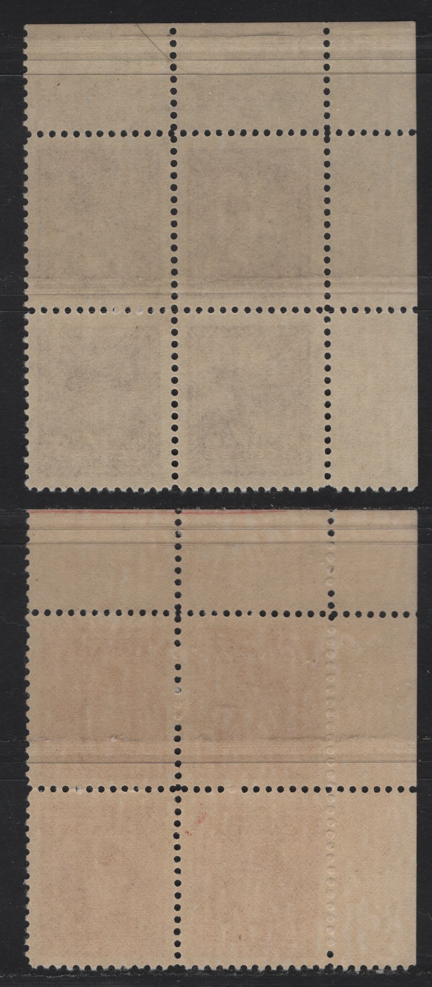 2 VFNH UL plate blocks of 4 of the 3c - 4c rose violet - dark carmine King George VI from the 1942-1943 War Issue, plates 27 (3c) & 1 (4c), perf 12.