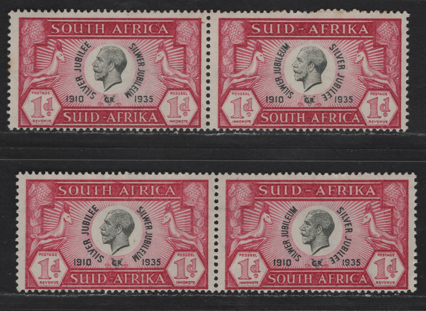 Lot 262 South Africa SC#69 1d Carmine Rose & Deep Carmine Rose King George V, 1935 Silver Jubilee Issue, 2 FNH Pairs