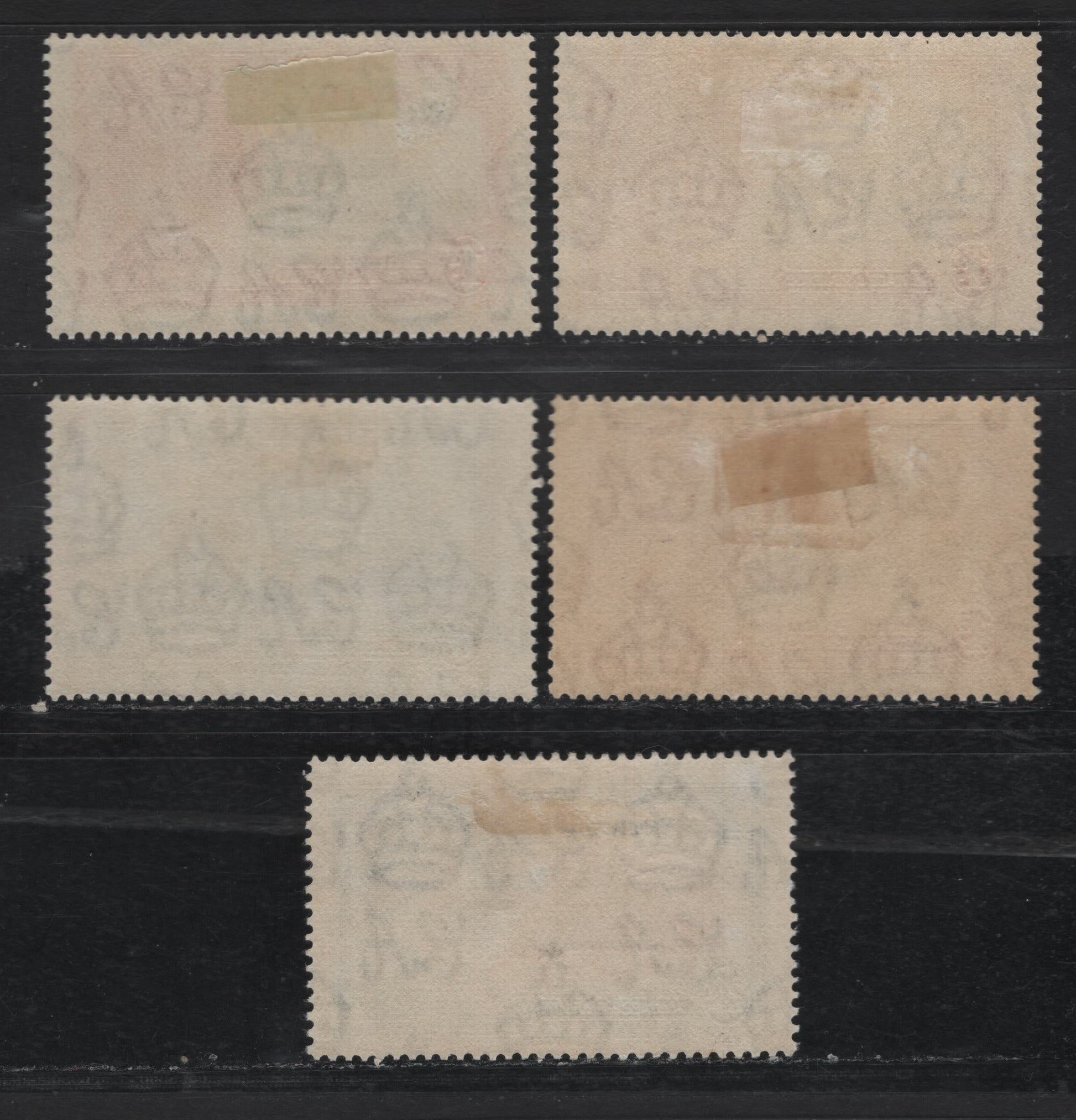 Scott values these at $15.75 for very fine, so we estimate them at $12. The stamps offered here grade between 70 and 80 as follows: