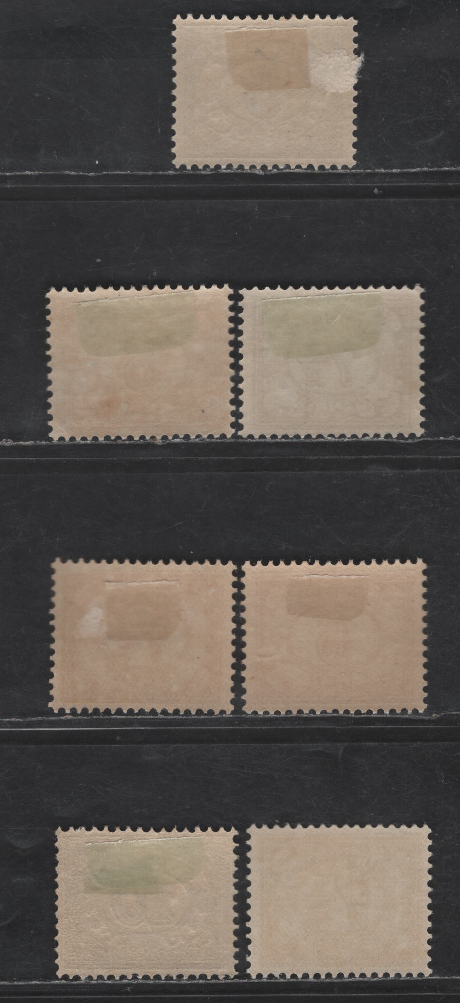 Lot 263 Suriname SC#84-87, 89-90 5c - 10c Lilac - Violet Numerals, 1913-1921 Numerals Issue, 7 VFOG Singles, White Background, Two Very Similar, But Slightly Different Shades of 7.5c Yellow