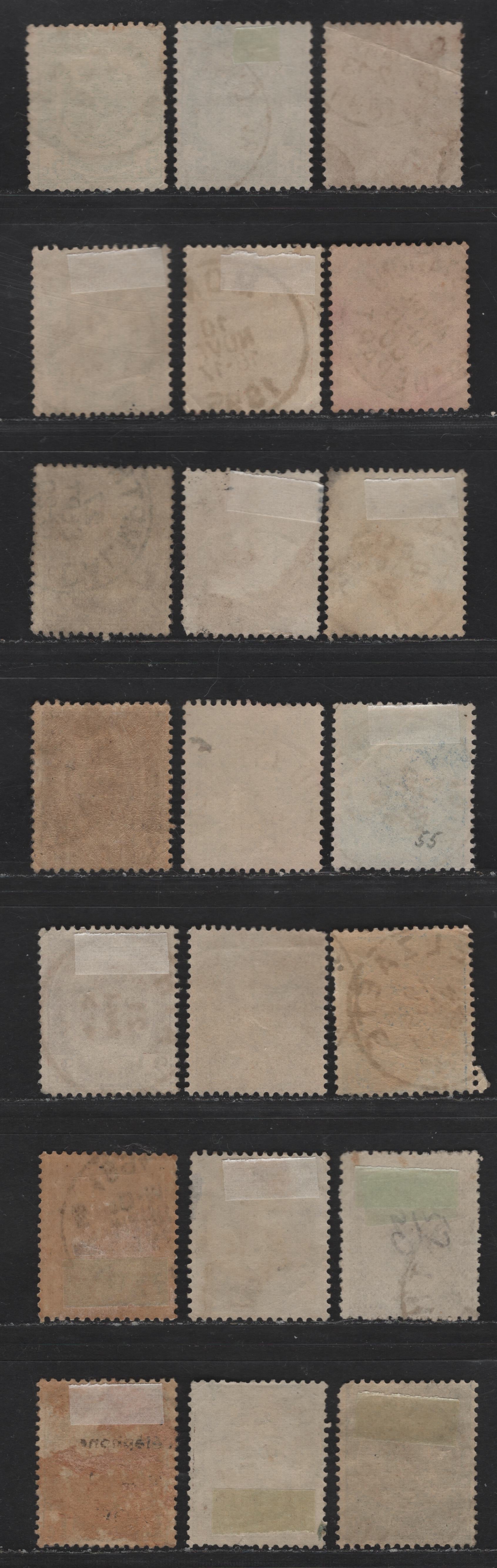 21 fine used singles of the 1c - 35c gray - red brown Leopold II from the 1893-1900 Leopold II Sunday Labels Issue, shade variations.