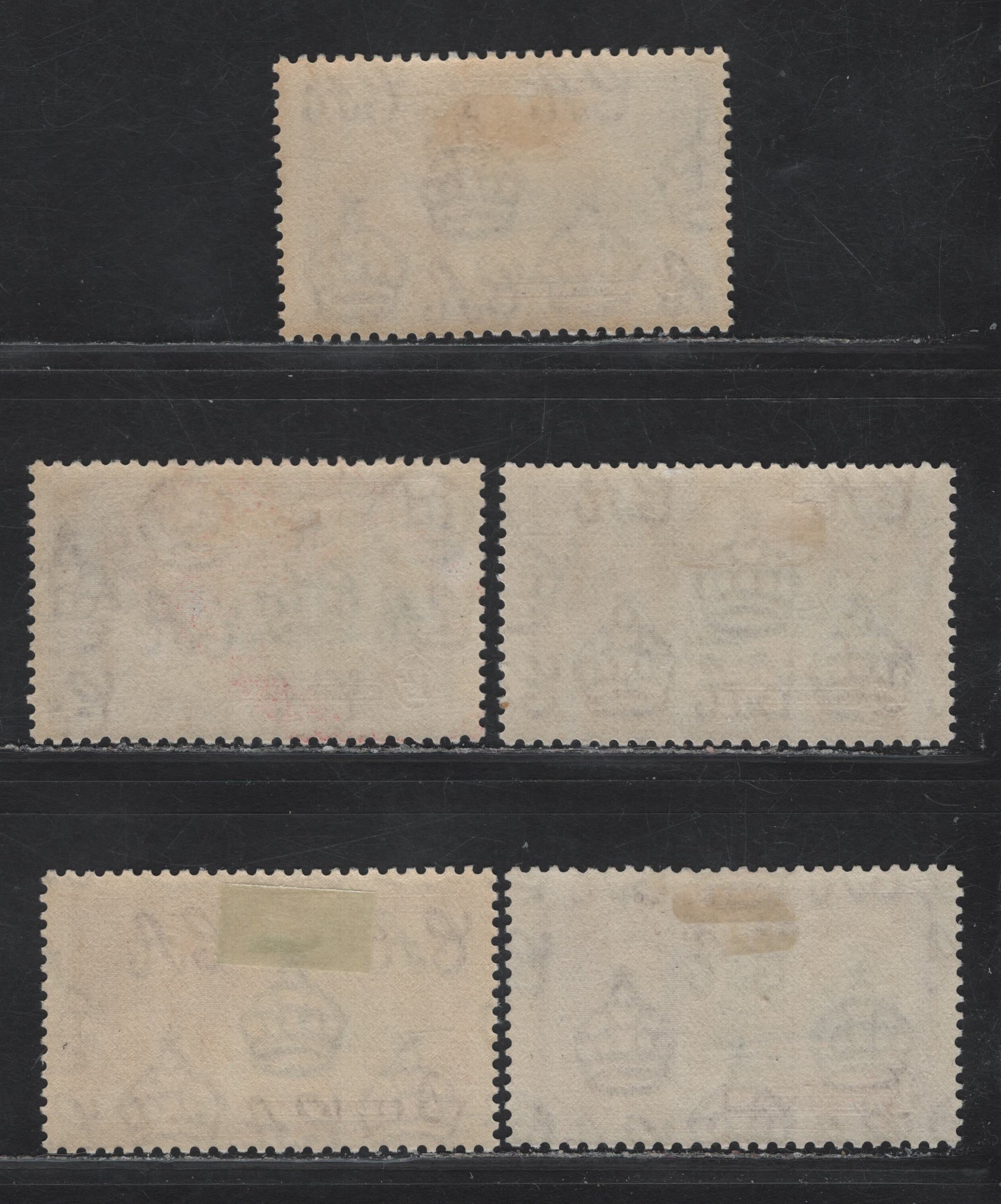 5 F/VFOG singles of the 1/- slate & purple/light purple KGV & Windsor Castle from the 1935 Silver Jubilee Issue, shade low showing subtle variations in frame & vignette plate shades.