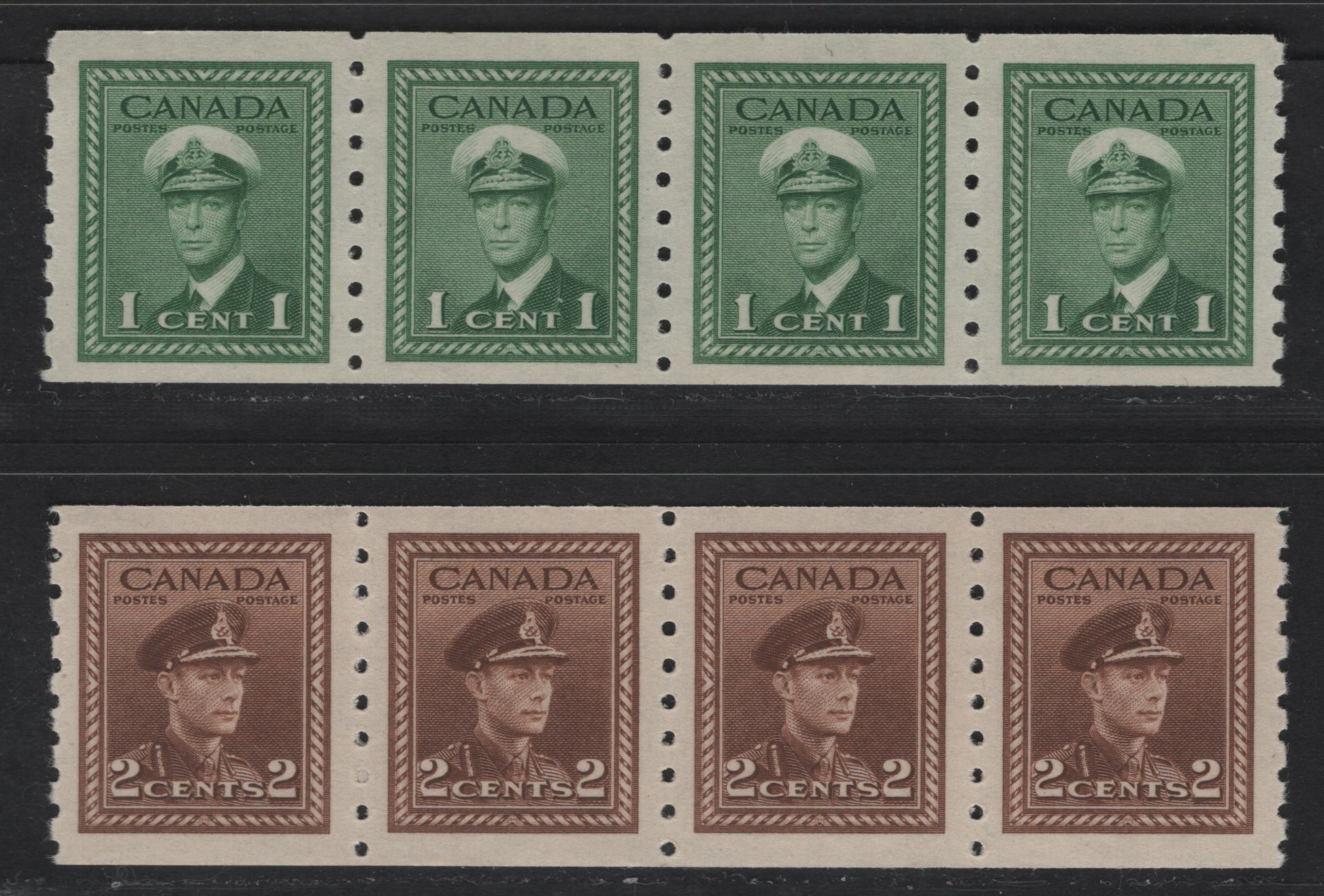 Lot 270 Canada #263-264 1c - 2c Green - Brown King George VI, 1942-1943 War Issue Coils, 2 VFNH Coil Strips Of 4, Perf 8 Vertical