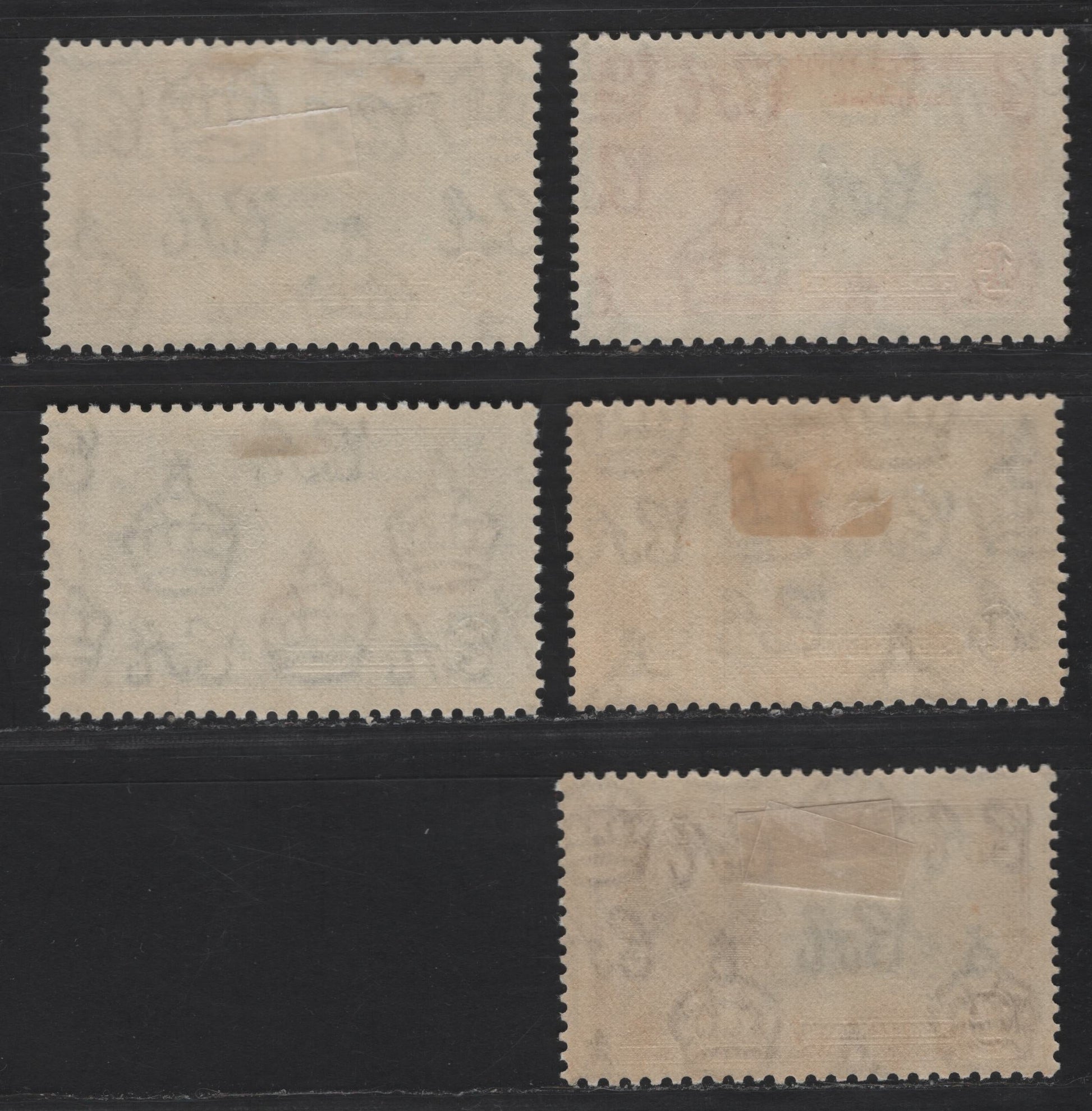 5 VFOG singles of the 1d - 1/- carmine & dark blue - brown violet & indigo King George V & Castle from the 1935 Silver Jubilee Issue, two similar vignette shades of ultramarine on the vignette, one bright than the other.