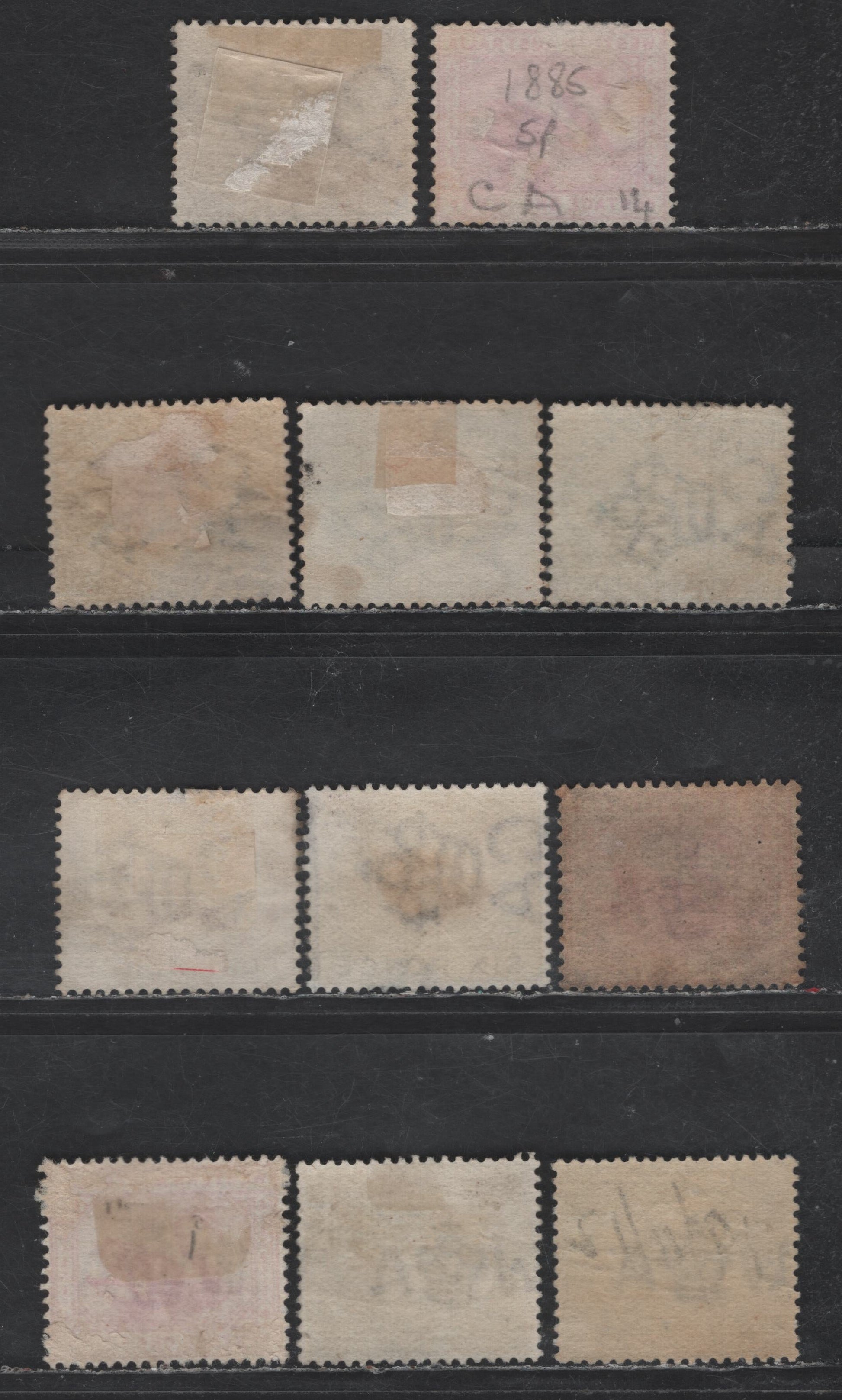9 fine/very fine used singles of the 3d - 2.5d red brown - blue Swans from the 1882-1907 Swan Keyplates Issues, crown ca & w crown a wmks.