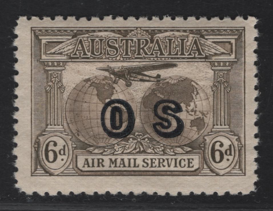 Lot 280 Australia SG#139a 6d Sepia Fokker F VIIs, 1931 Kingsford Smiths Flights Issue, A FNH Single, OS Overprint