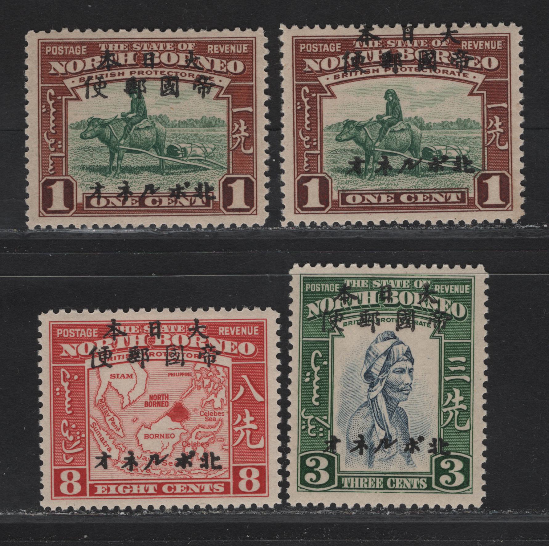 Lot 281 North Borneo SG#J20, J22, j25 1c - 8c Green & Red Brown - Scarlet Buffalo Transport - Eastern Archipelago, 1944 Japanese Occupation Overprinted 1939 Pictorial Issue, 3 VFOG Singles