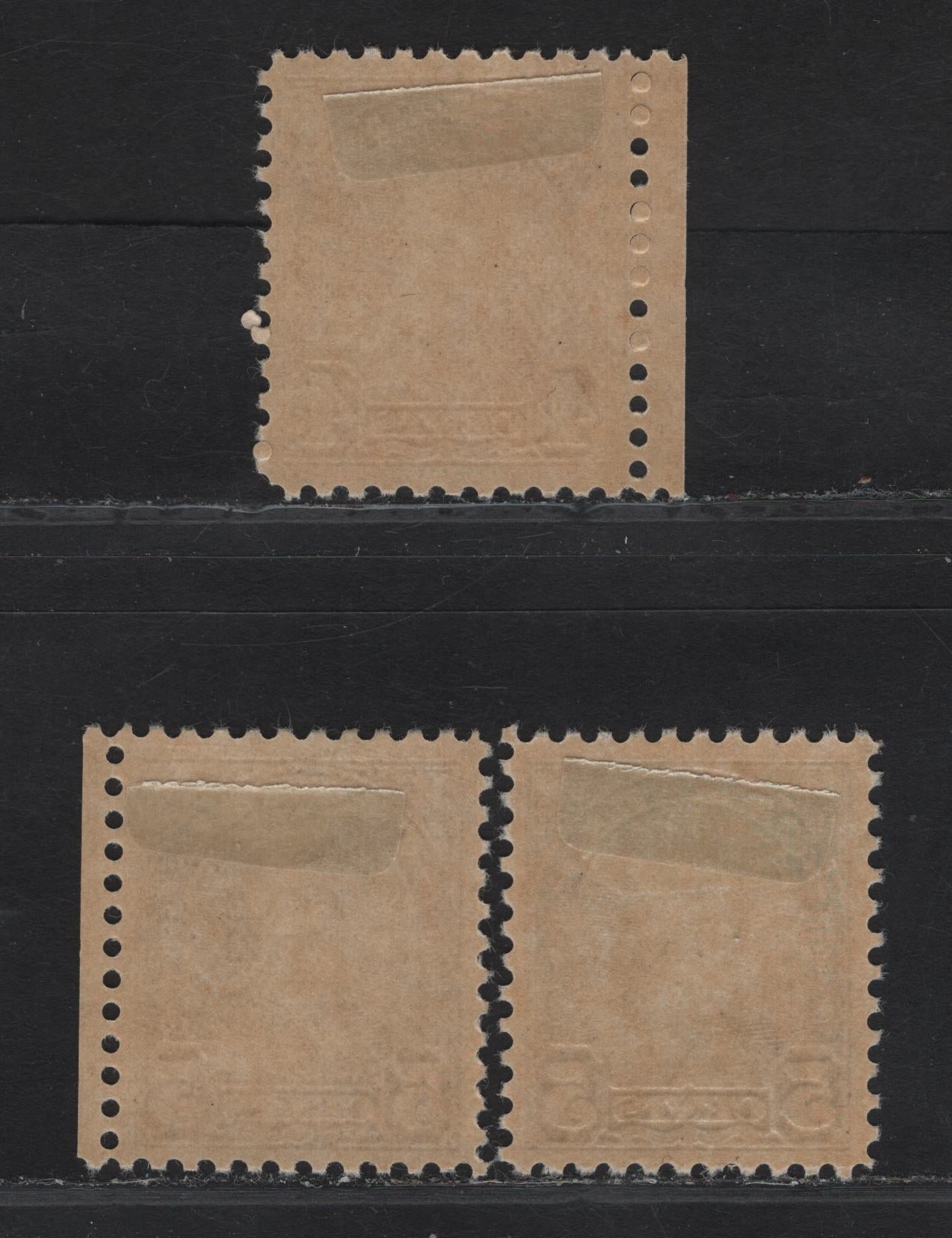Lot 282 (C) Canada #168, 169A, 170 4c Yellow Bistre Perf 10.8 On Paper BABN-B, 5c Milky Violet Perf 10.8 On BABN-B, 5c Blue Perf 10.75x10.8 On Type BABN-B ,1930-1931 King George V Arch/Leaf Issue, 3 VFOG Singles