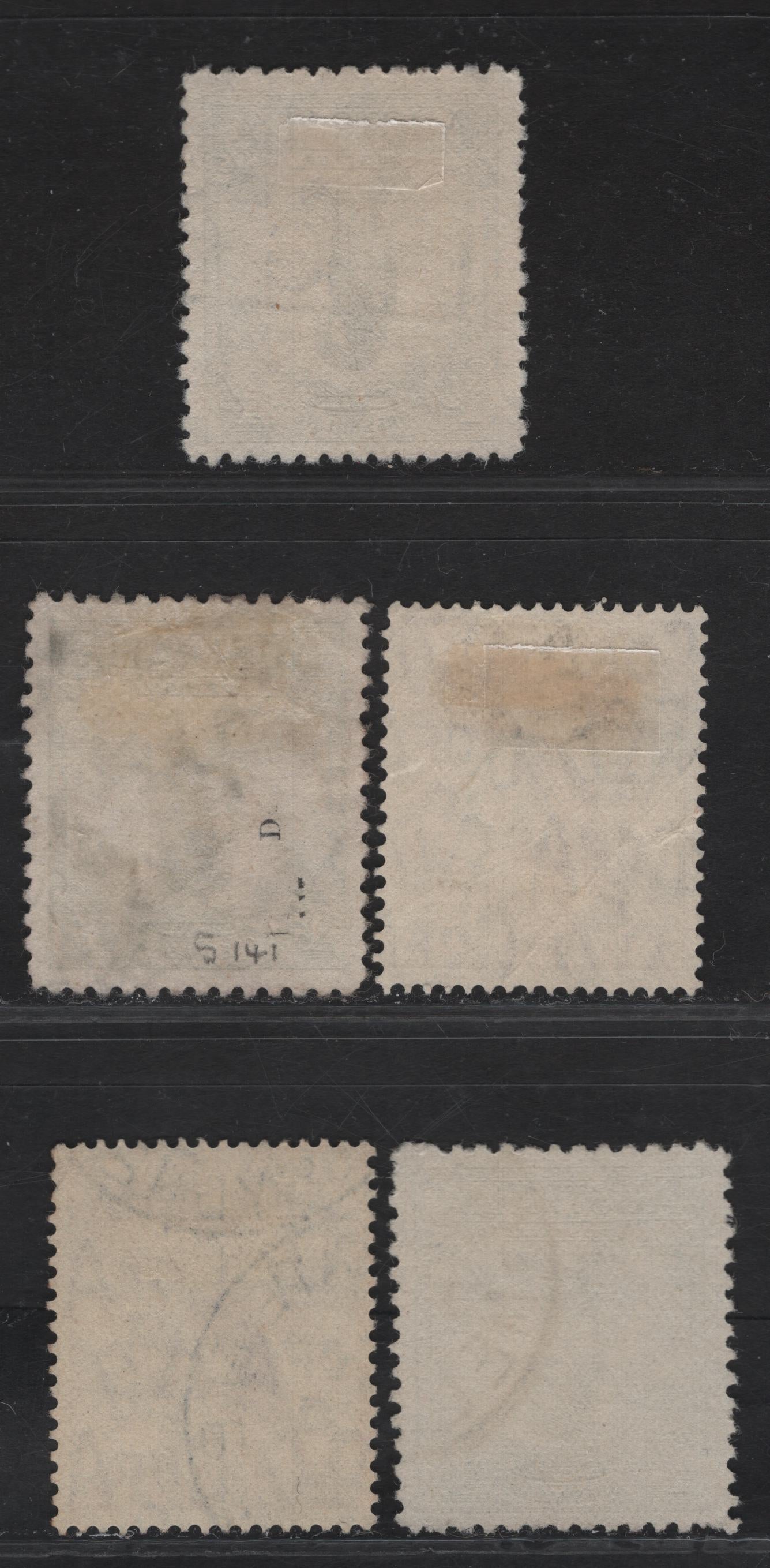 5 very fine used singles of the 1/- - 6d green - red brown Lyrebird - Kookaburra from the 1932 Lyrebird - Kookaburra Definitives, 3 different shades of 1/- that are not the listed yellow green, two of the 6d.