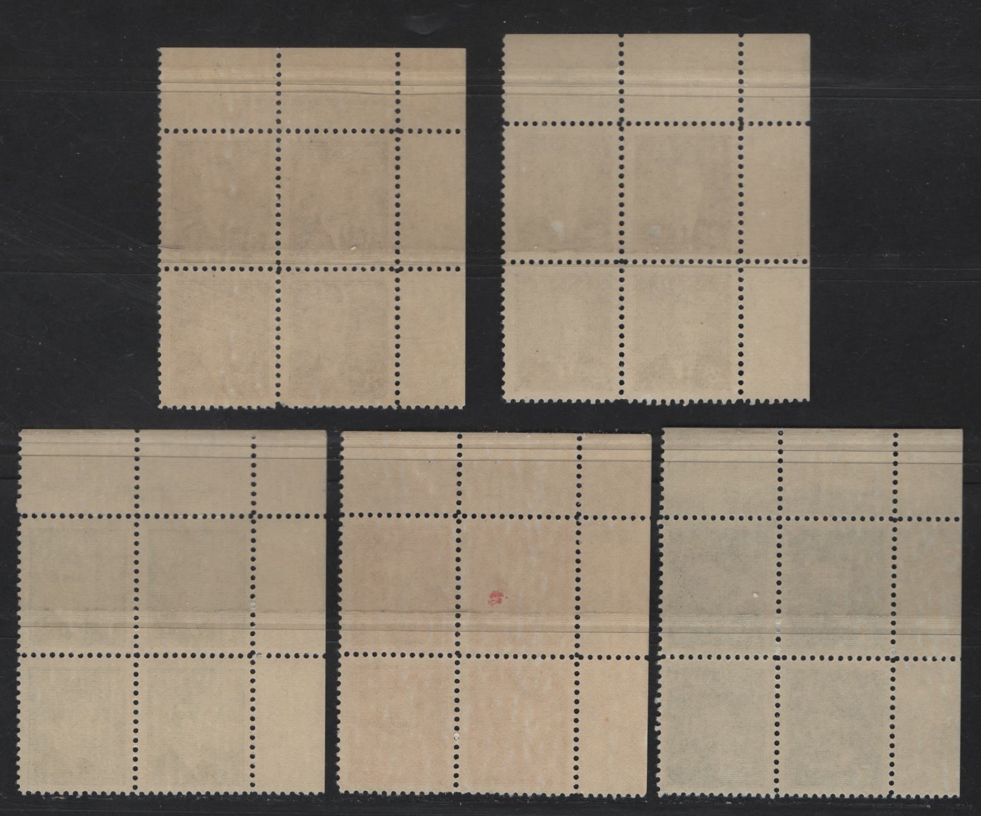 Lot 288 Canada #284-288 1c - 5c Green - Deep Blue King George VI, 1949 Postes-Postage Issue, 5 VFNH Plate Blocks Of 4, Plates 8 (1c), 3 (2c), 12 (3c), 6 (4c) & 1 (5c)