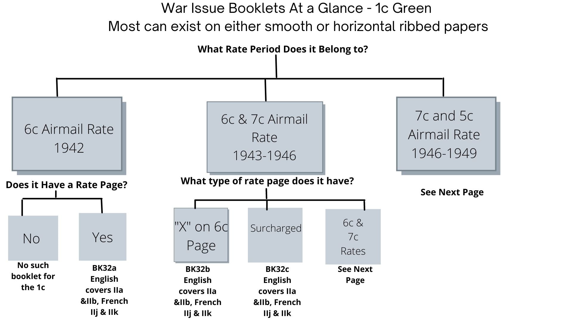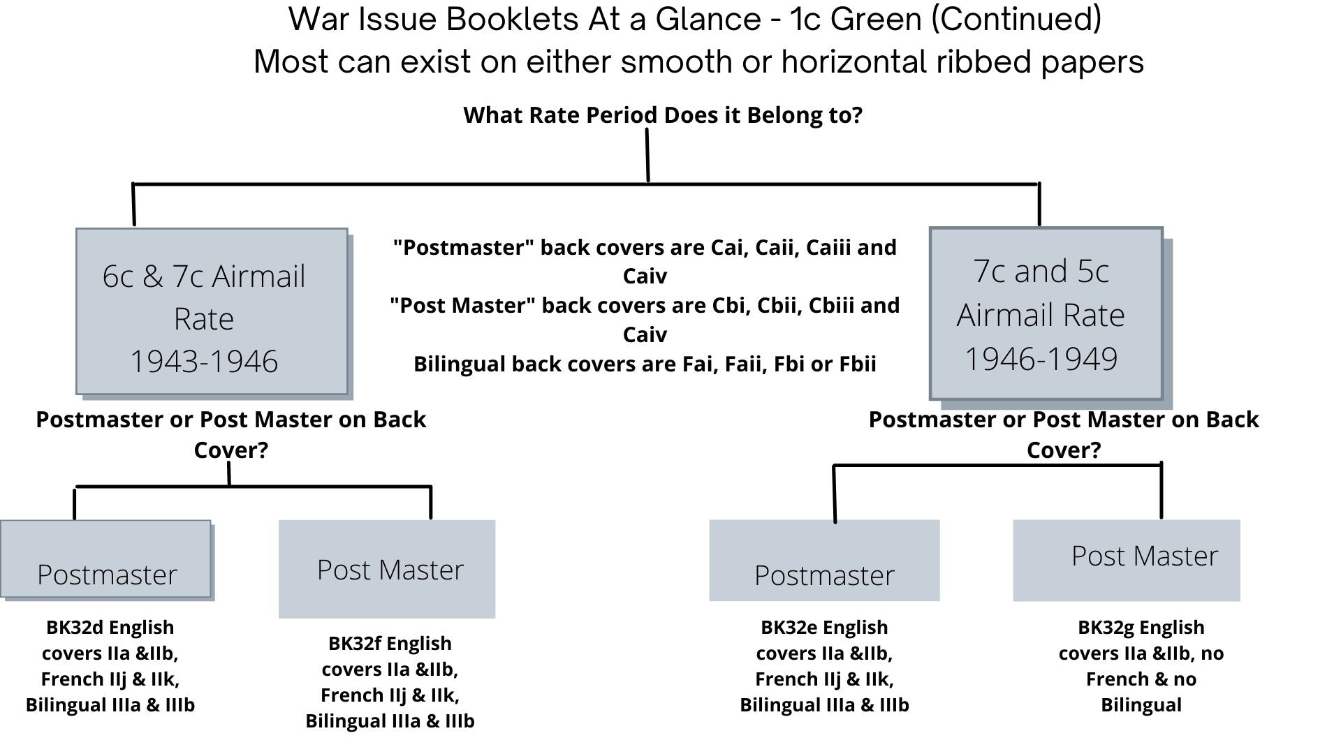 Lot 344 Canada #BK32f 1942-1949 War Issue, Type IIA "Post Master", Complete 25¢ English Booklet, 4 Panes of 1c Green, Smooth Vertical Wove Paper, Harris Front Cover Type IIa, Back Cover Type Cbiii, 7c & 6c Airmail Rates Page