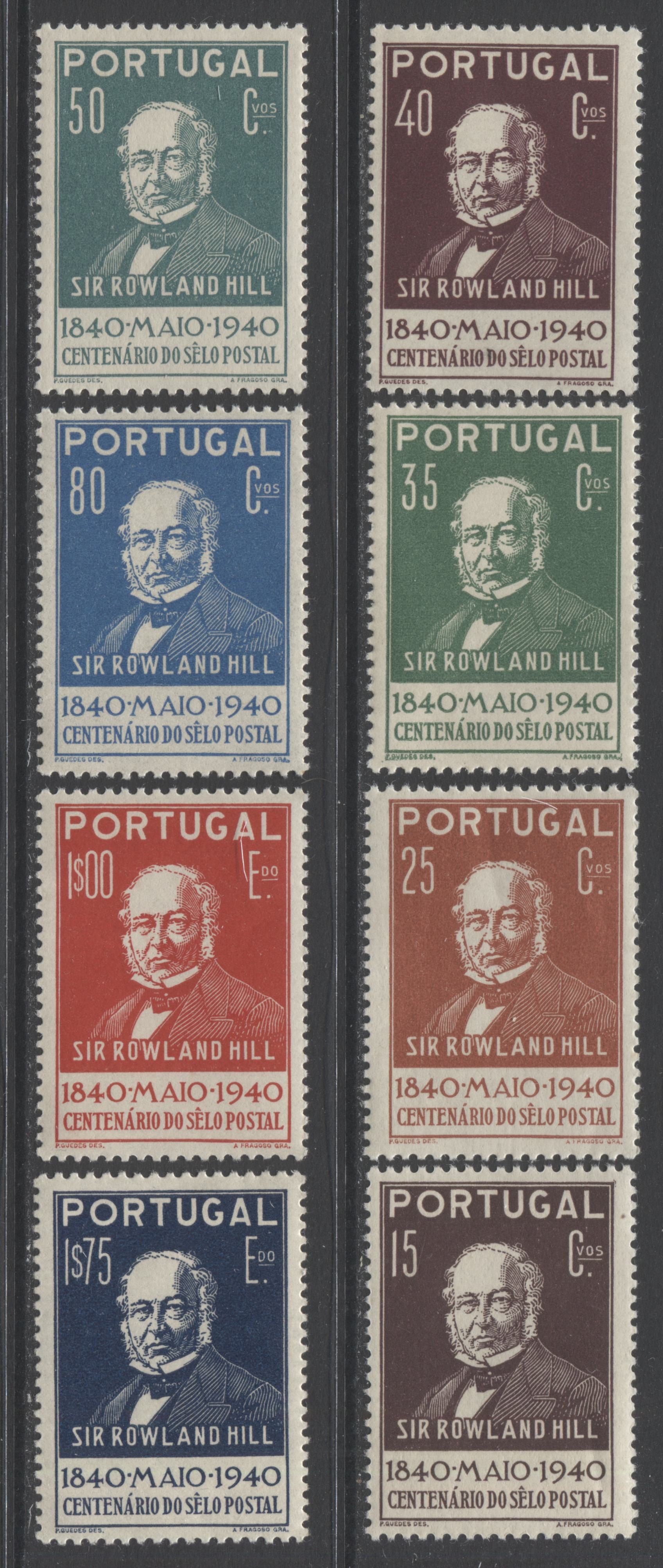 Lot 165 Portugal SC#595-602 1940 Stamp Centenary Issue, a Fine NH and VFNH Complete Set, 2022 Scott Classic Cat $75 USD