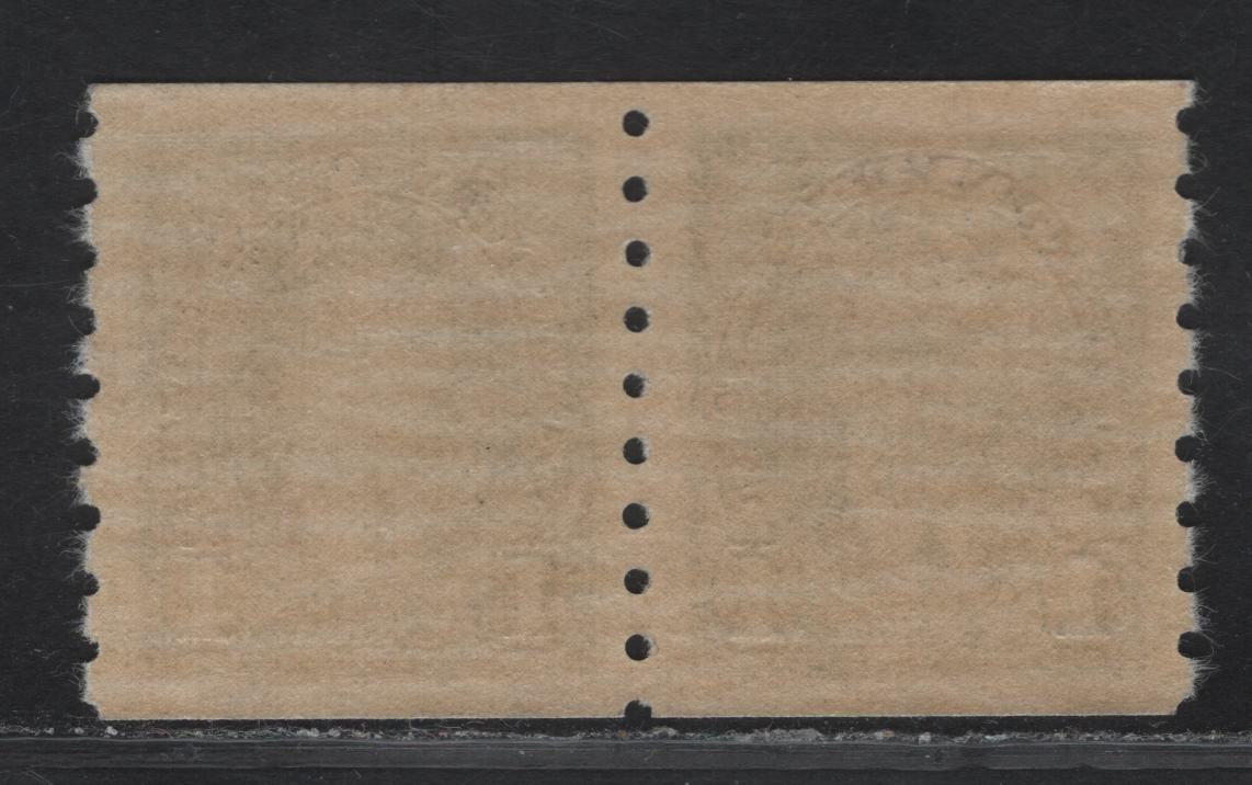 Lot 294 Canada #238 1c Green King George VI, 1937 KGVI Coil Issue, A VFOG/NH Coil Pair, Paper/Gum CBN-QQ, Rotary Bar Perf 8, 1 Stamp Hinged, One NH But With Light Finger Print.