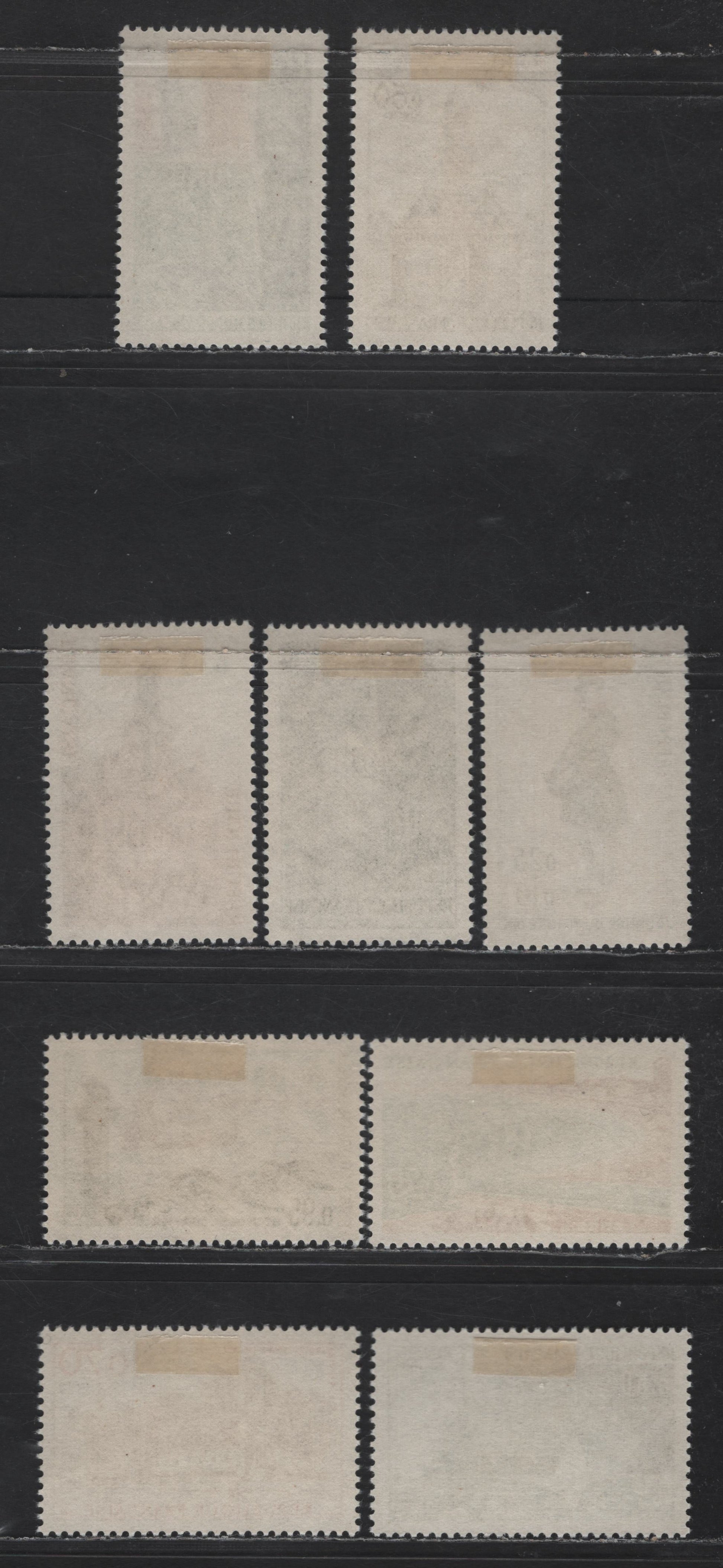 9 VFOG singles of the 50c - 25c+10c blue, slate blue & brown - indigo, green & red City Hall - Letter Carrier from the 1967 Views & Semi Postal Issues, HF & HB papers.