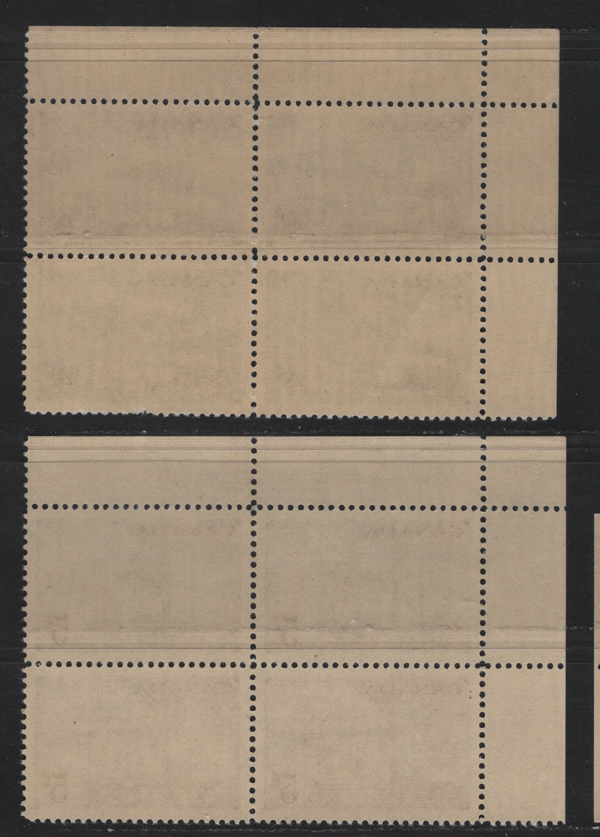 2 VFNH UL plate 2 blocks of 4 of the 4c - 5c dark gray - purple Trains - Steamships from the 1951 Stamp Centenary Issue, light crease on 4c block, perf 12.