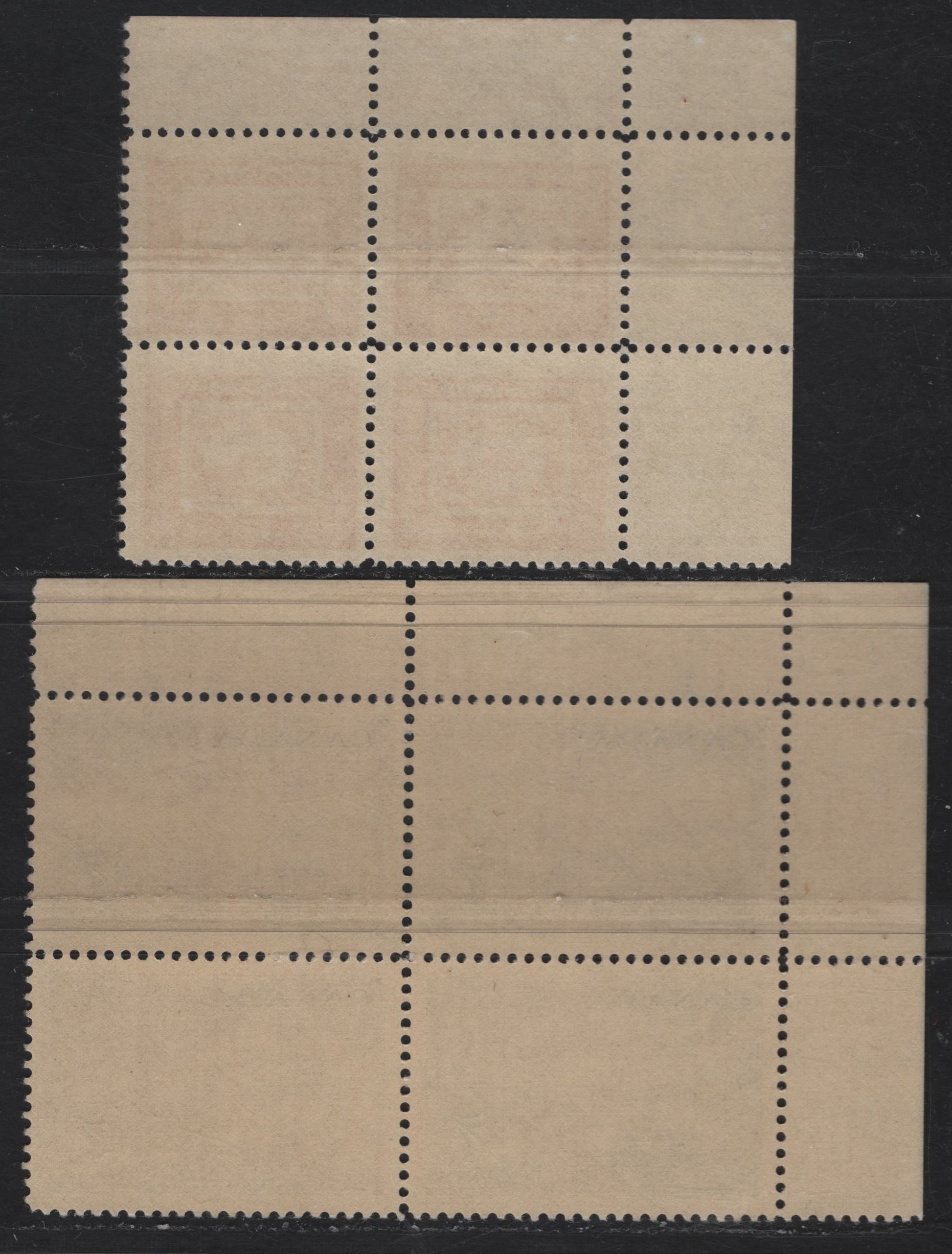 2 VFNH UL plates 1 & 2 blocks of 4 of the 7c - 15c deep blue - bright red Stagecoach & Plane - Three Penny Beaver from the 1951 Stamp Centenary Issue, perf 12.