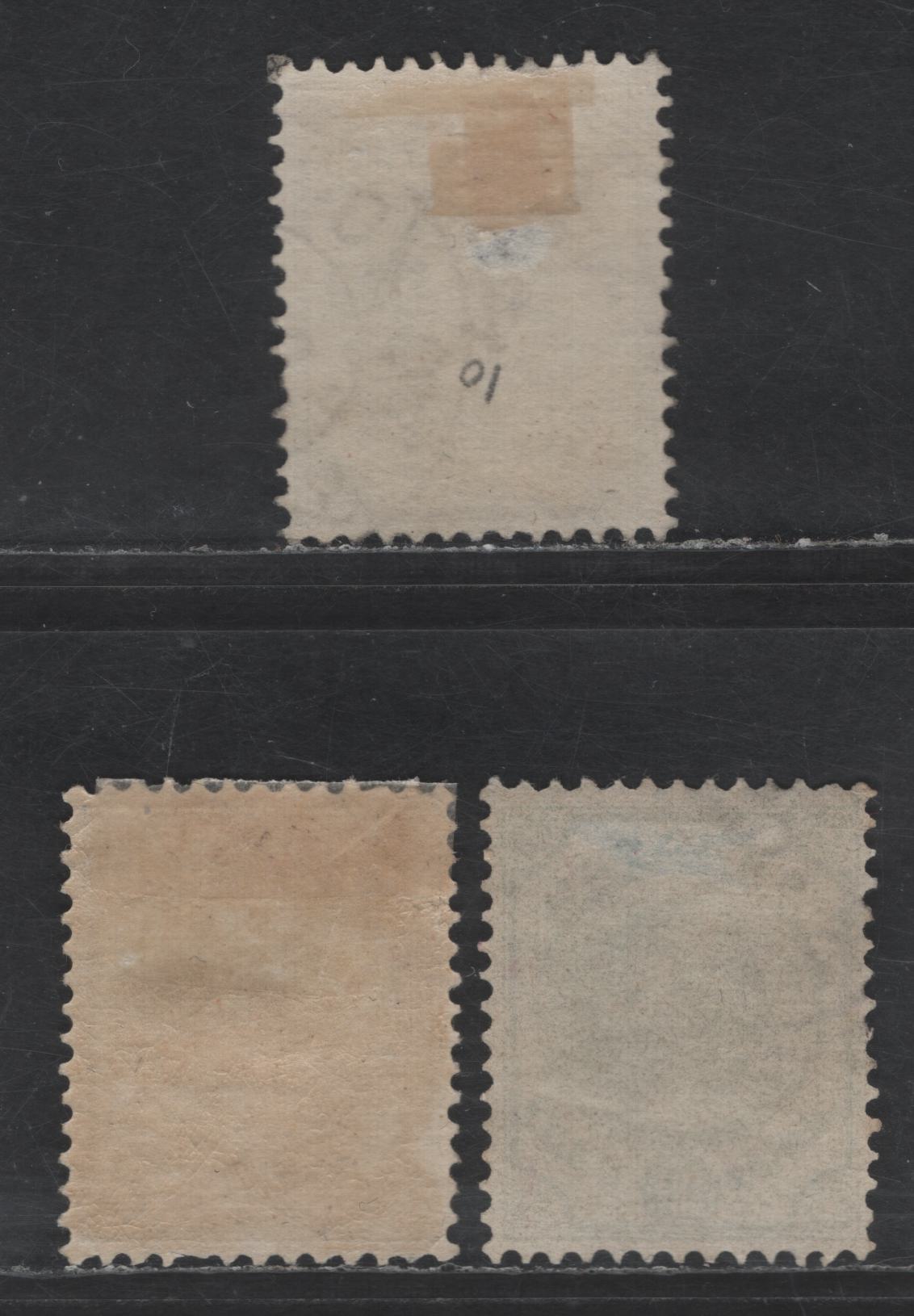 3 very fine used singles of the 10c - 12.5c on 40c ultramarine - green Queen Wilhelmina from the 1892-1896 Queen Wilhelmina Issue.