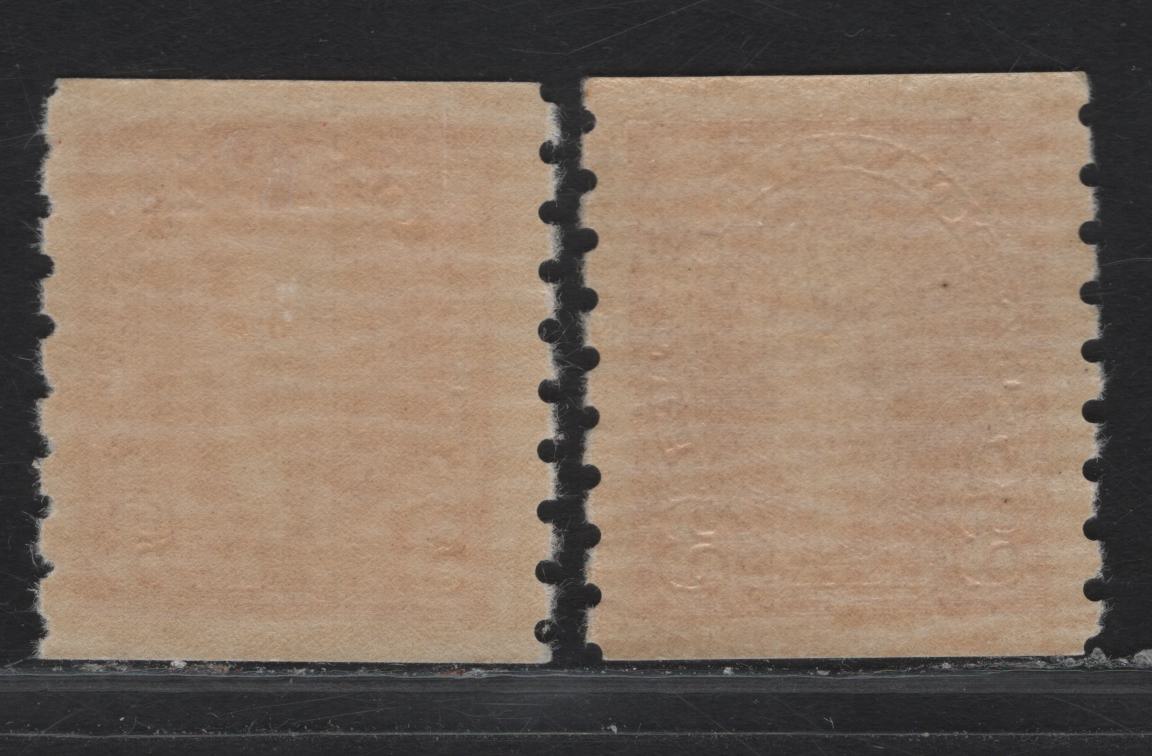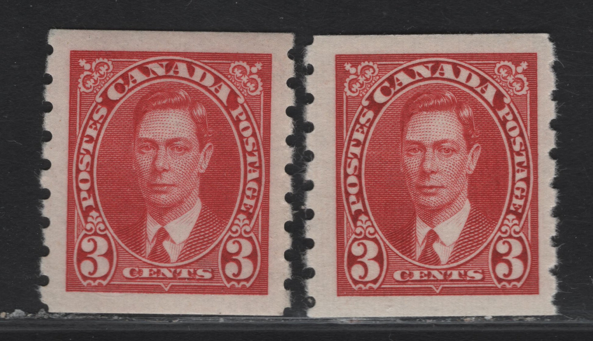 Lot 301 (C) Canada #240 3c Bright & Dark Carmine King George VI, 1937 KGVI Coil Issue, 2 VFOG Coil Singles, Paper/Gum CBN-QQ, Rotary Bar Perforation 8 Vertical