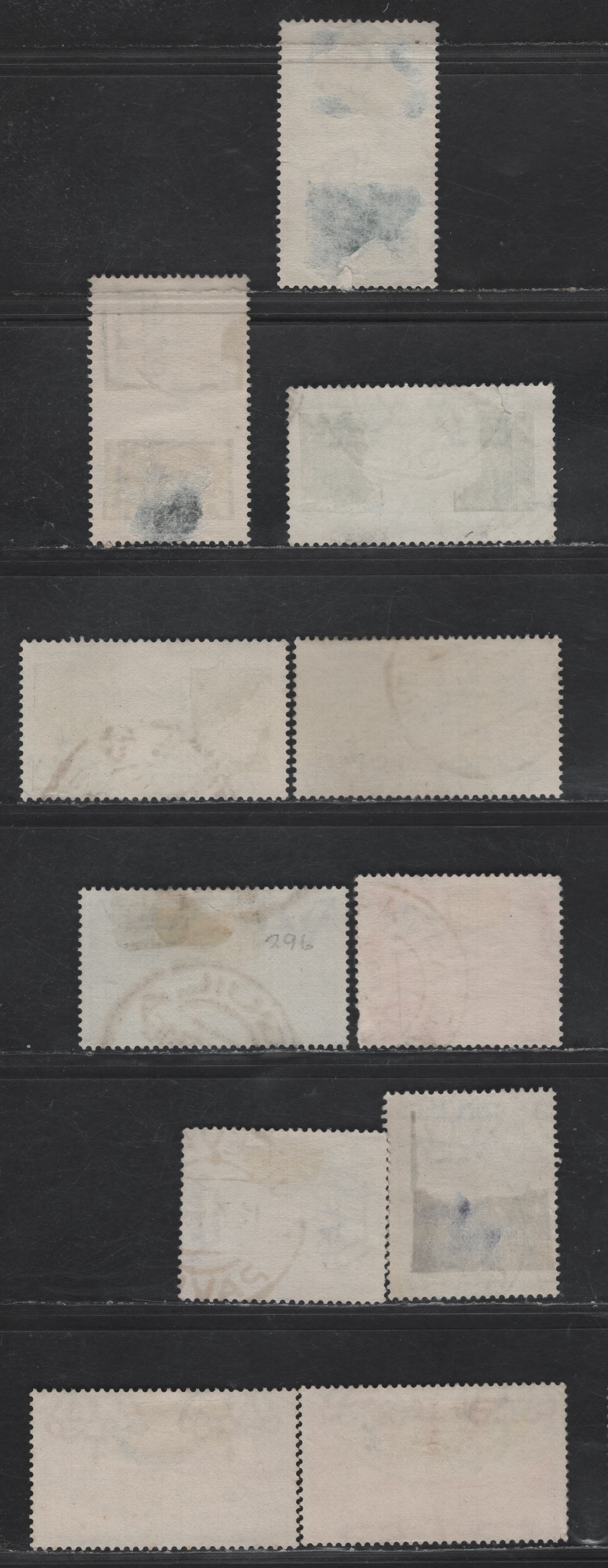11 fine/very fine used singles of the 25c - 50c dark green - violet Abbey of Monte Cassino - Italian Railroads from the 1929-1939 Abbey of Monte Cassino - Italian Railroads Issues.