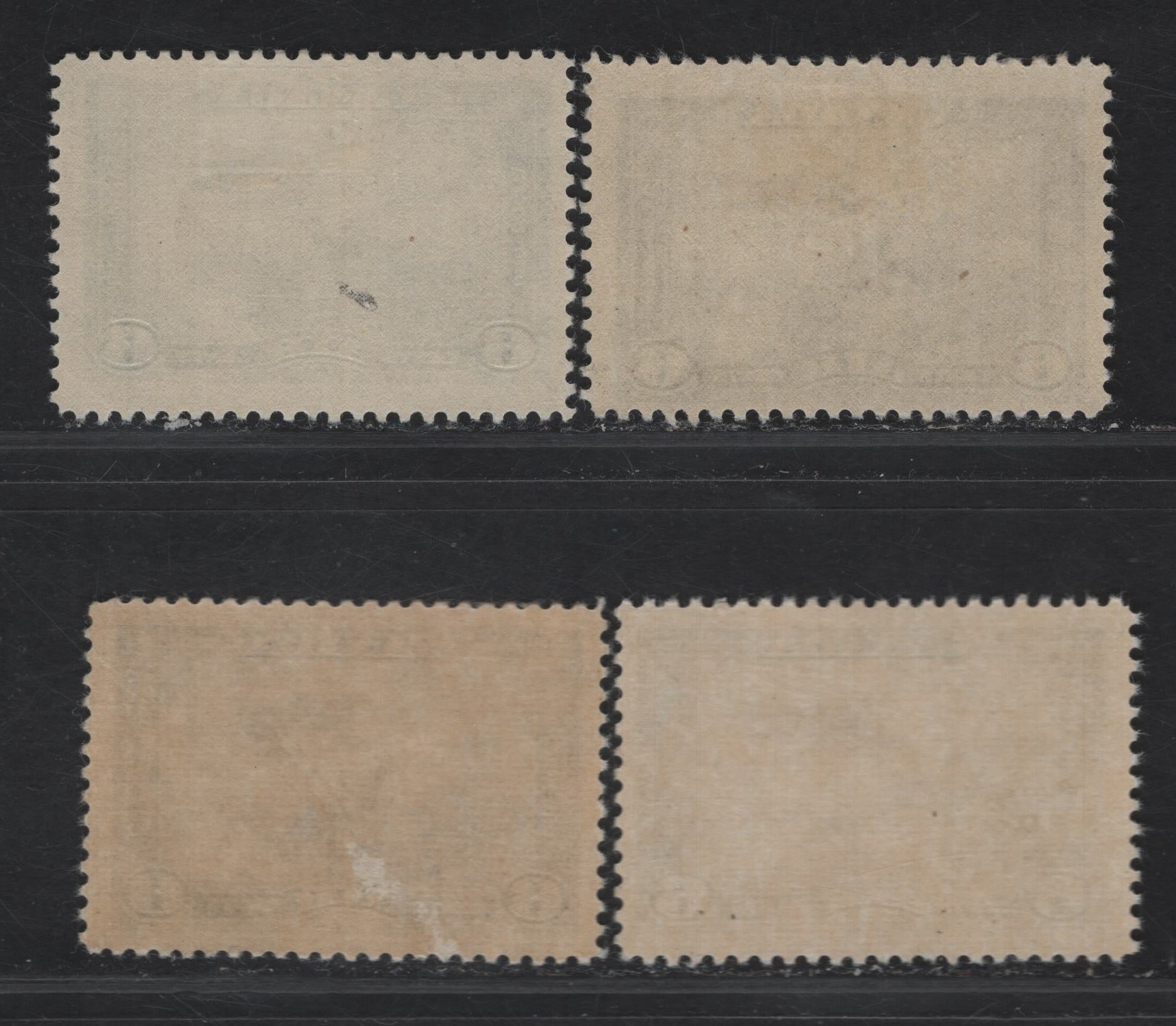 4 F/VFOG singles of the 6c deep dull blue - deep bright blue Monoplane Over Mackenzie River from the 1938 Airmail Issue, CBN-AA, CBN-O, CBN-BB & CBN-W gum/papers, perfs 11.95, 11.9x12,12 & 12x12.1.
