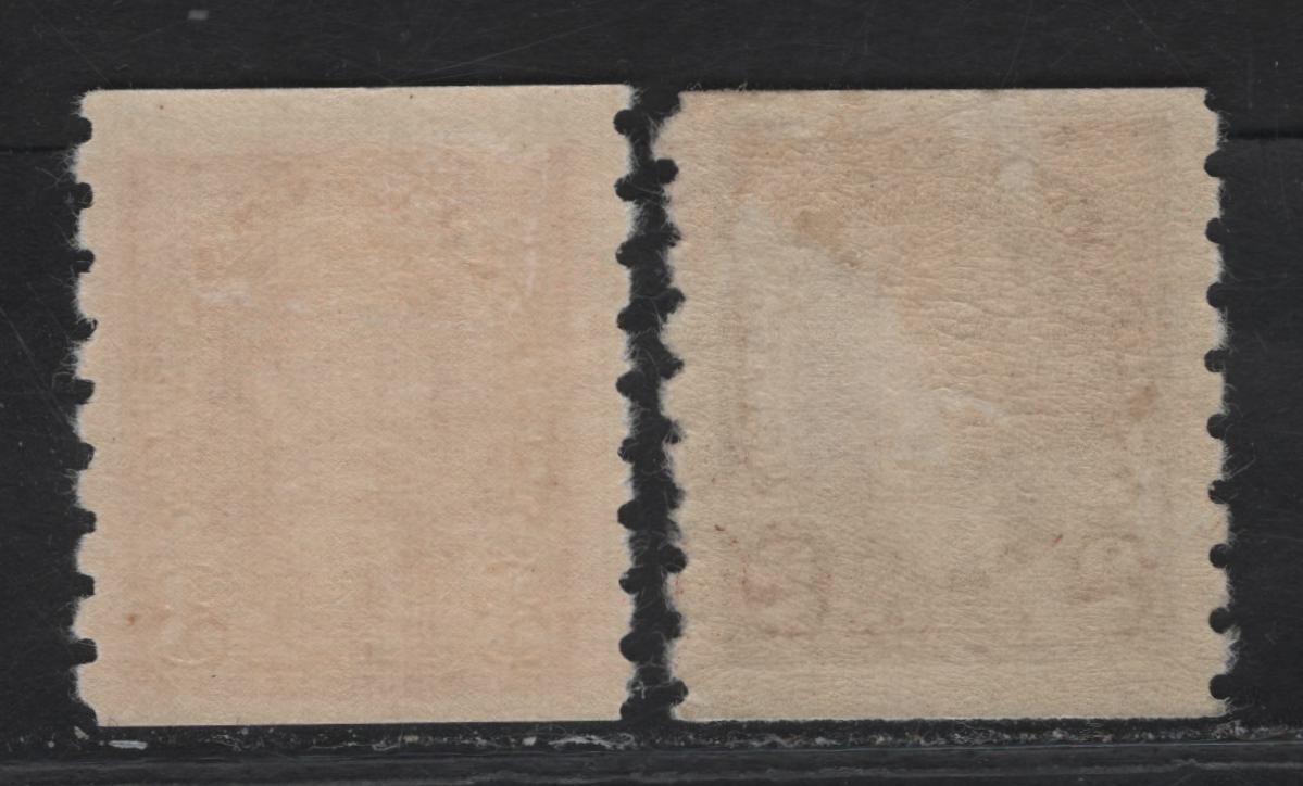 Lot 310 Canada #239-240 2c - 3c Brown - Carmine King George VI, 1937 KGVI Coil Issue, 2 FOG Coil Singles, Paper/Gum CBN-TT, Rotary Bar Peforation