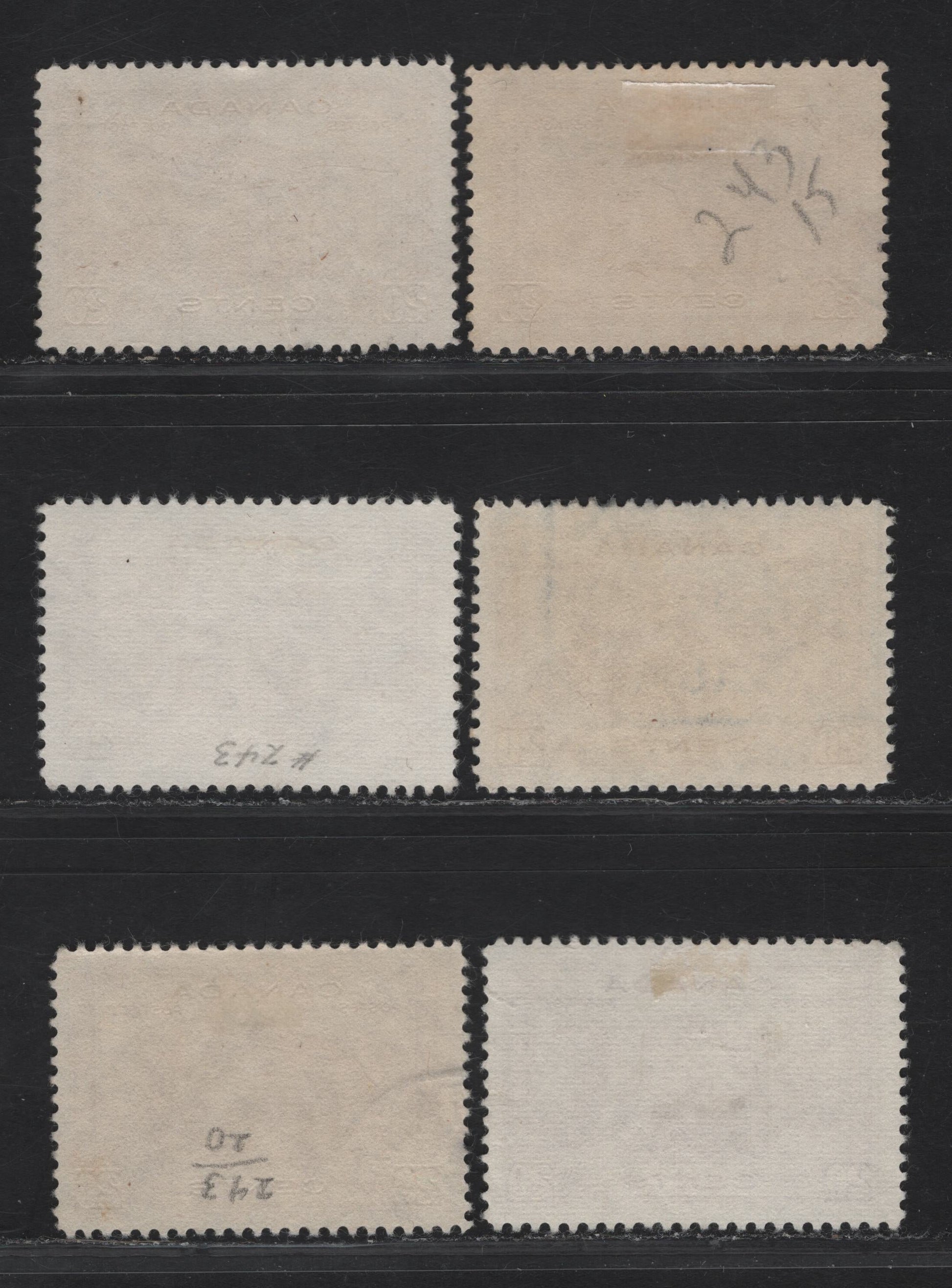 Lot 310 Canada #243 20c Brown Red, Deep Brown Red, Red Brown Fort Garry Gate, 1938 Pictorial Issue, 6 F & VF Used Singles Used Examples On Different CBN Papers With Different Perfs
