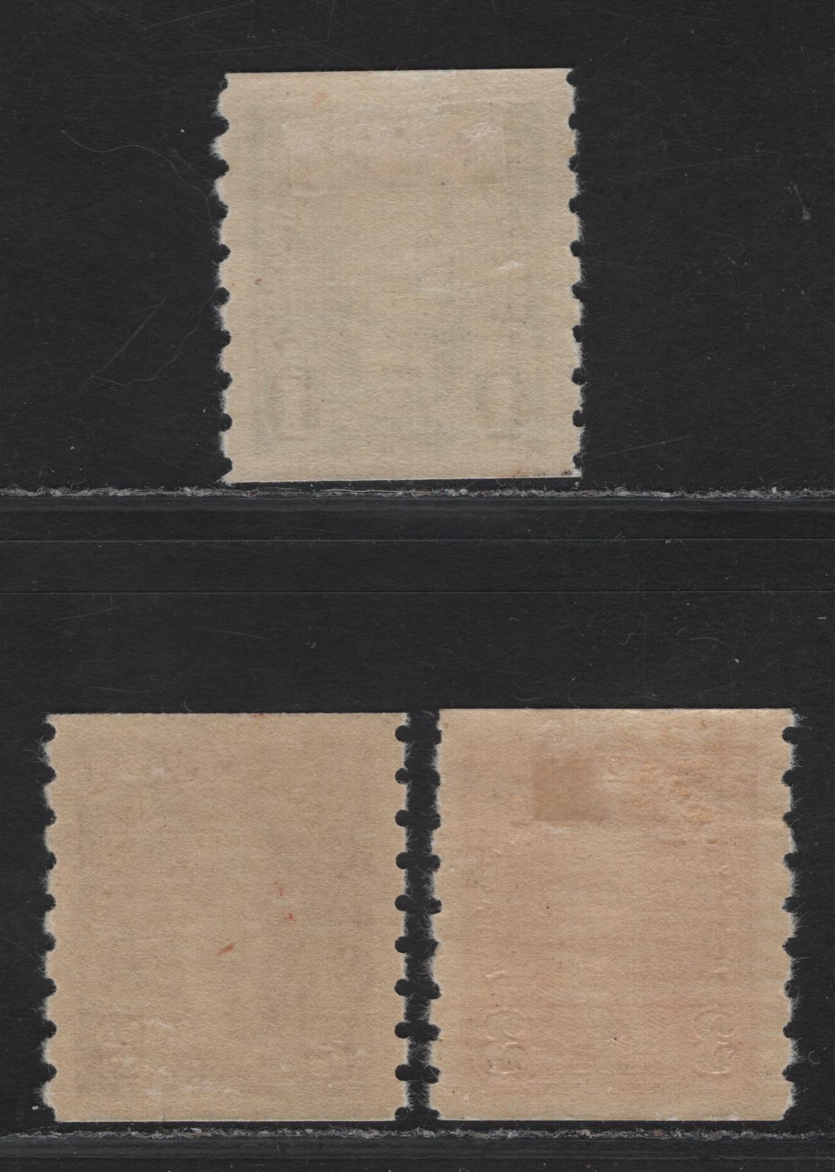 Lot 313 Canada #238-240 1c-3c Green - Carmine King George VI, 1937 KGVI Coil Issue, 3 VFOG Coil Singles, Paper/Gum CBN-UU, Rotary Bar Peforation