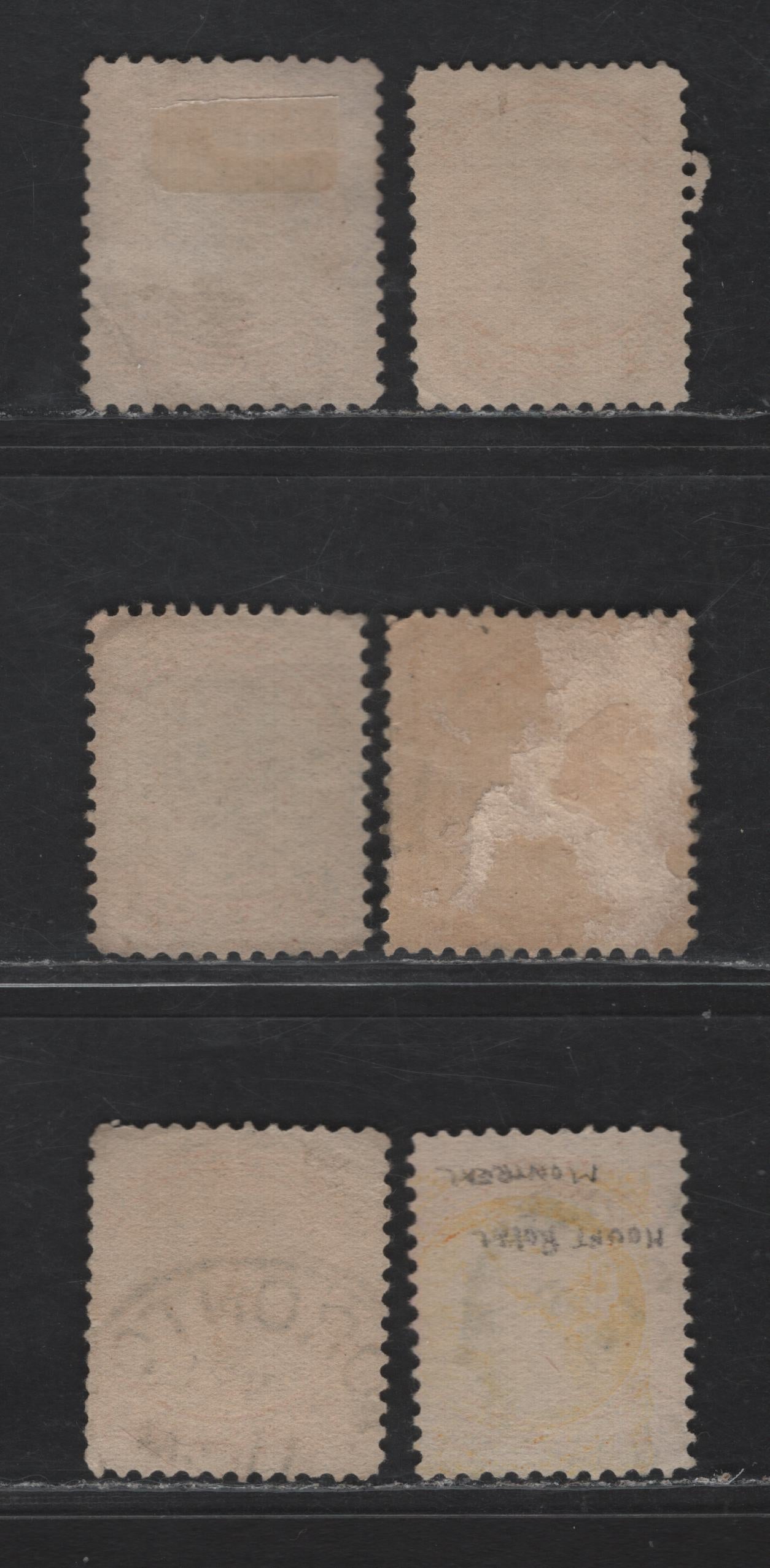 6 fine used singles of the 1c yellow & bright yellow Queen Victoria from the 1870-1893 Small Queen Issue, late second Ottawa printings, paper 2O-F.