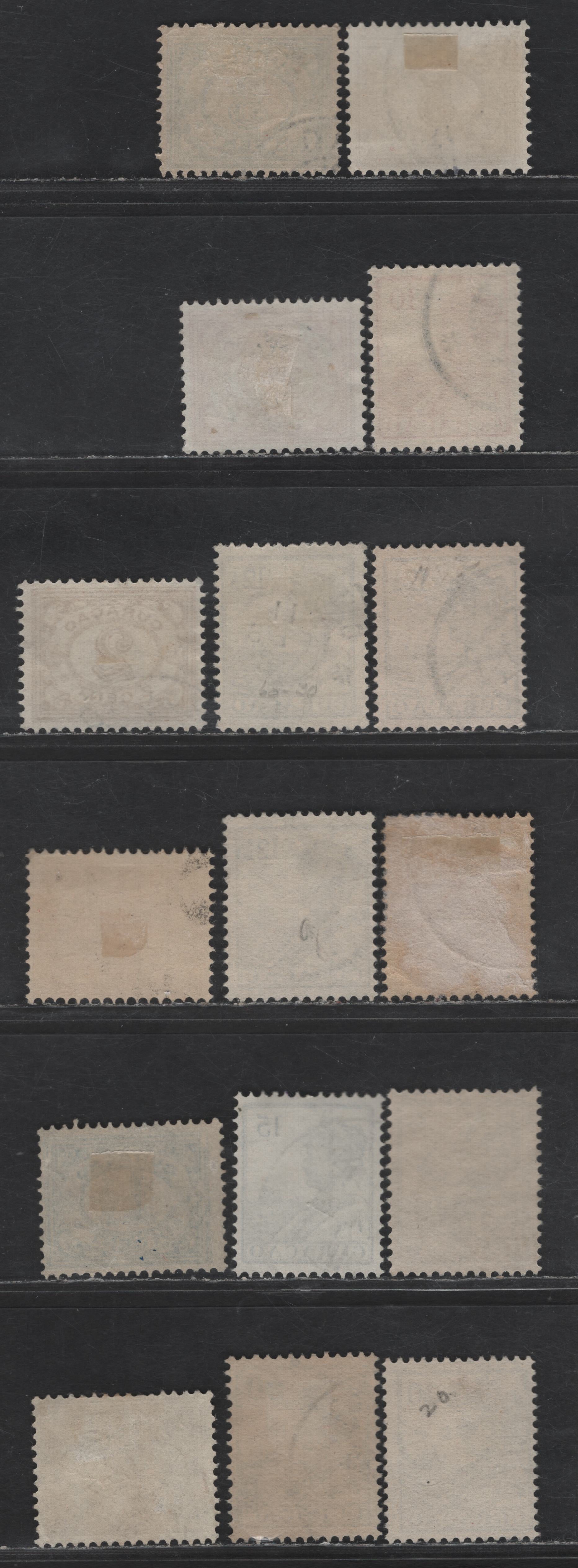 16 fine used singles of the 2c - 30c yellow brown - slate Numerals - Queen Wilhelmina from the 1915-1933 Queen Wilhelmina & Numeral Issues.