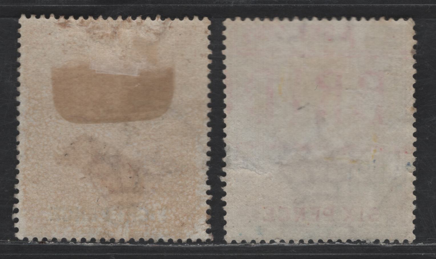 Lot 32 Barbados SG#121-122 6d - 8d Mauve & Carmine - Orange & Ultramarmarine Seahorses & Carridge, 1897 Diamond Jubilee Issue, 2 Very Good/Fine Used Singles, 6d Is VG and 8d is Fine