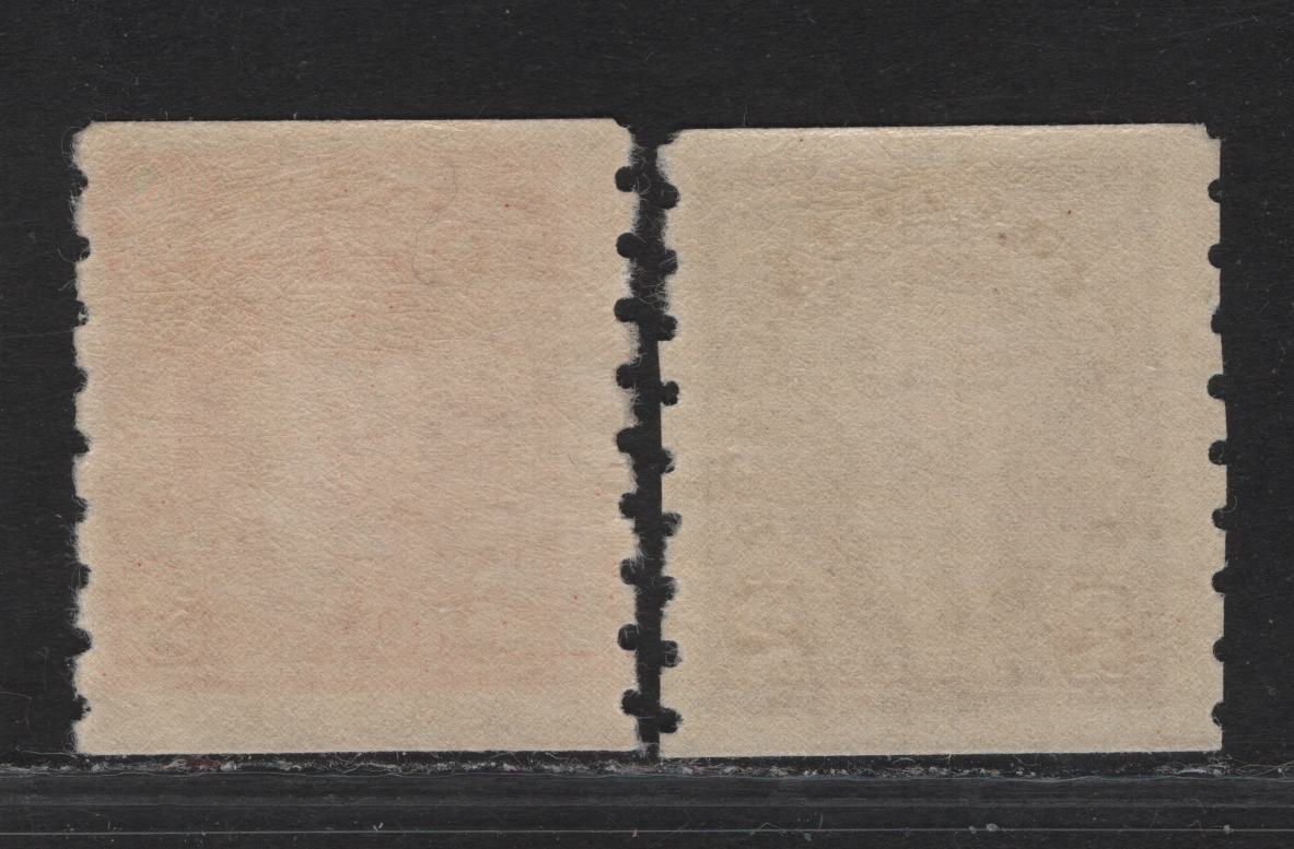 Lot 321 Canada #239-240 2c-3c Brown - Carmine King George VI, 1937 KGVI Coil Issue, 2 FNH Coil Singles, Paper/Gums CBN-YY, Rotary Bar Perforated