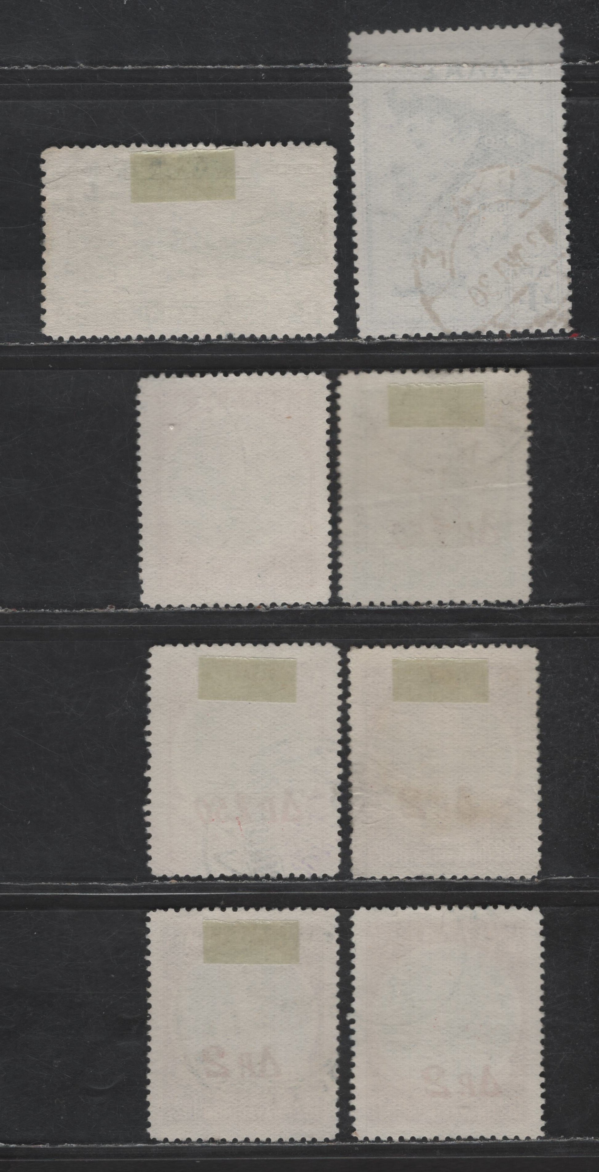 8 Very Fine Used singles of the 5d lake & black - 2d grey & dark brown from the 1927-1928 Battle Of Naverino - 1932 Surcharges Issues. The 8d Athens Stadium is pef 13x11 1/2. The 5d is perf 12 1/2x13. The 1.5d surcharge & 2d Edward Coddington Surchargess are perf 12 1/2x13 and there are two centre shades of the 2d on 5d Sir Coddington and both are perf 12 1/2x13 1/2