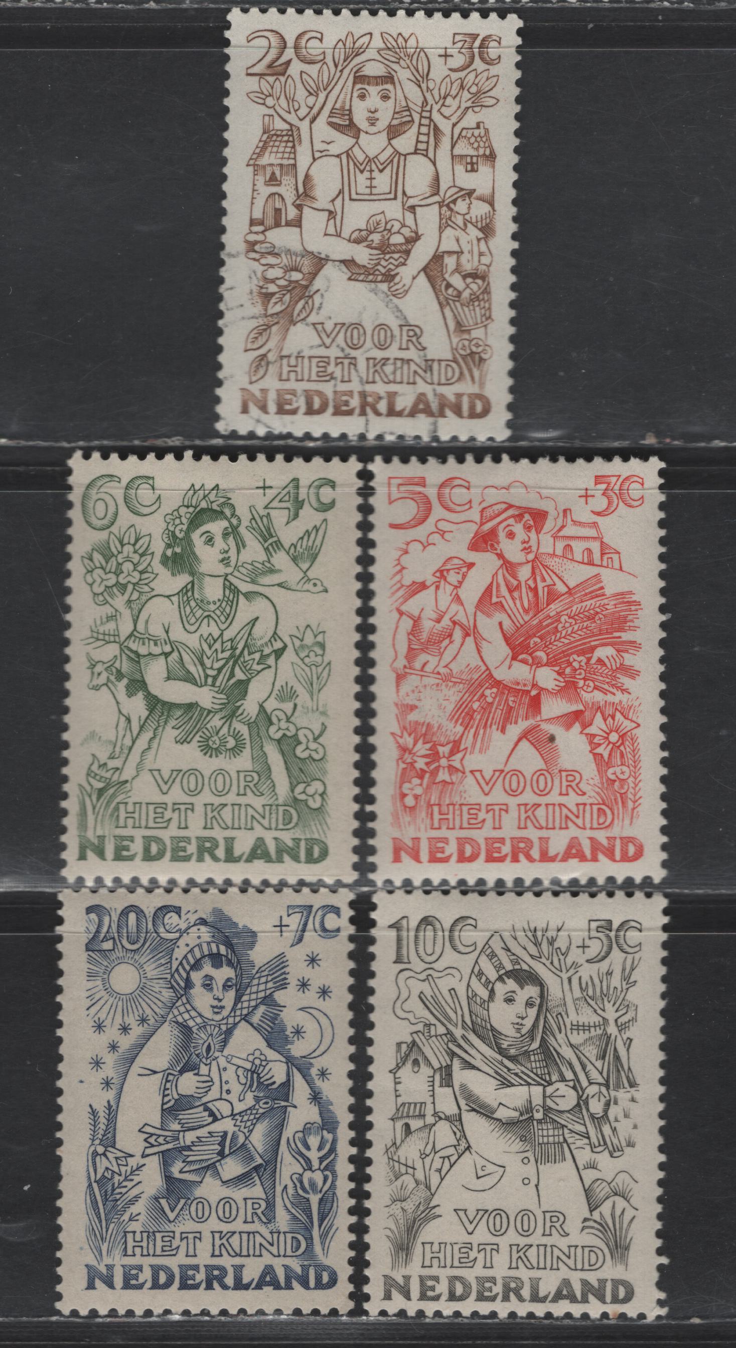 Lot 330 Netherlands SC#B203-B207 2c+3c - 20c+7c Brown - Blue Autumn - New Years, 1949 Semi Postal Issue, 5 VFOG/MH Singles