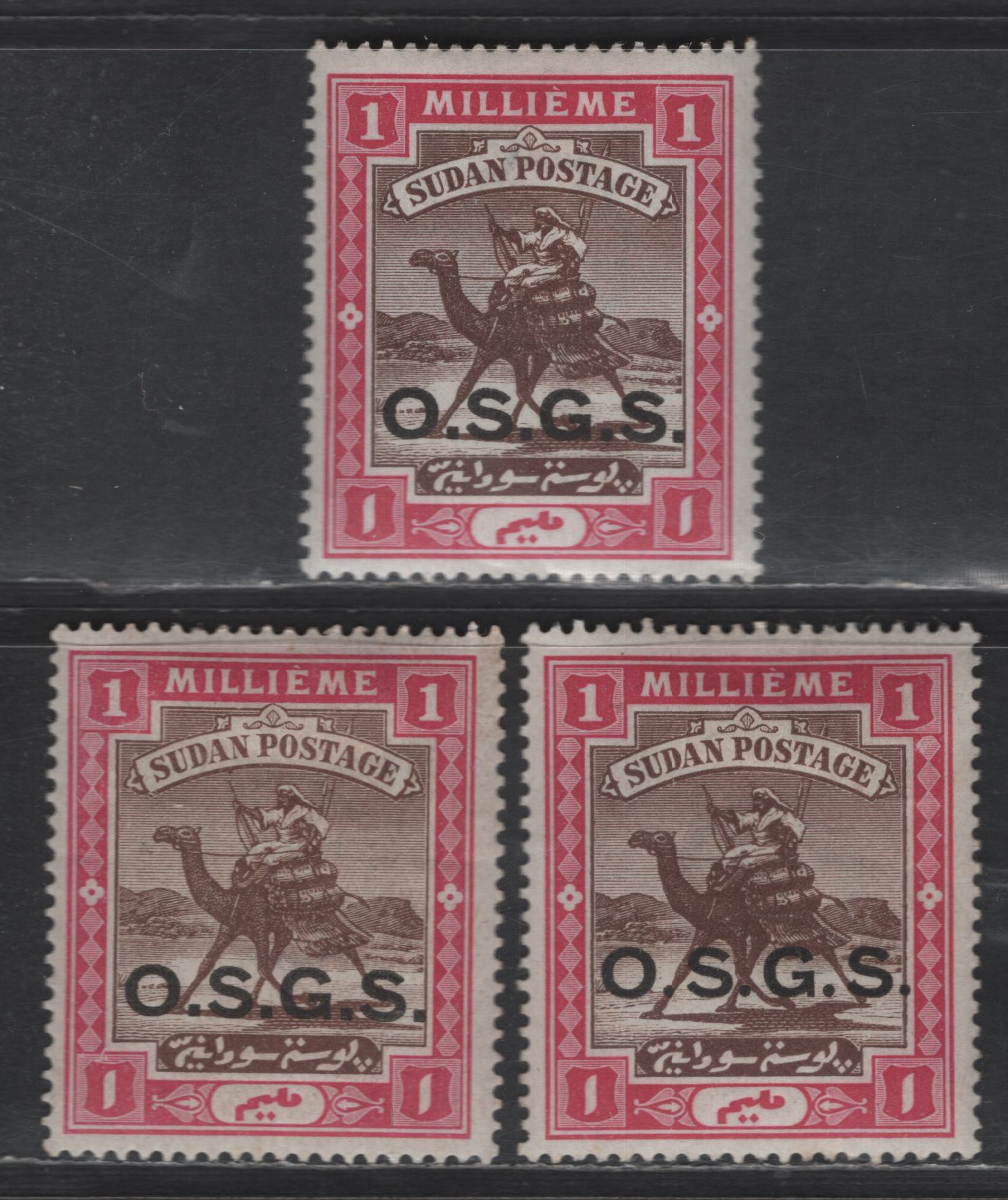 Lot 336 Sudan SG#O3 1m Brown & Carmine Rose Arab Postman, 1902 Arab Postman Official Overprinted Issue, 2 VFOG Single, 2 Shades, Rosette Wmk