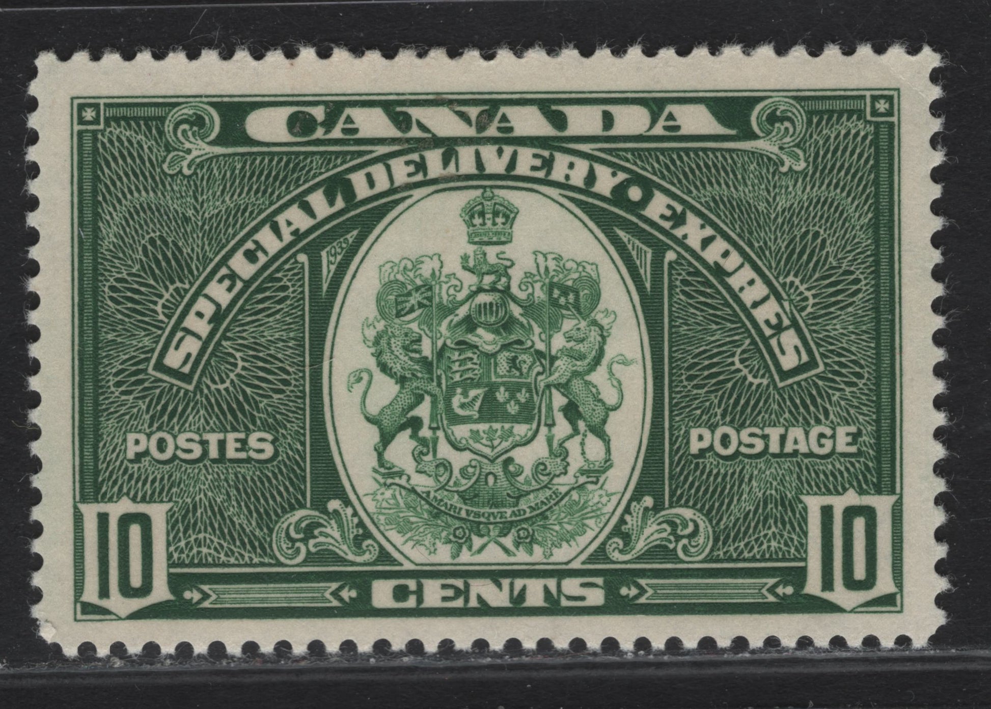 Lot 339 Canada #E7 10c Deep Green Emblem, 1939 Special Delivery Issue, A VFOG Single, Paper/Gum CBN-II, Perf 12