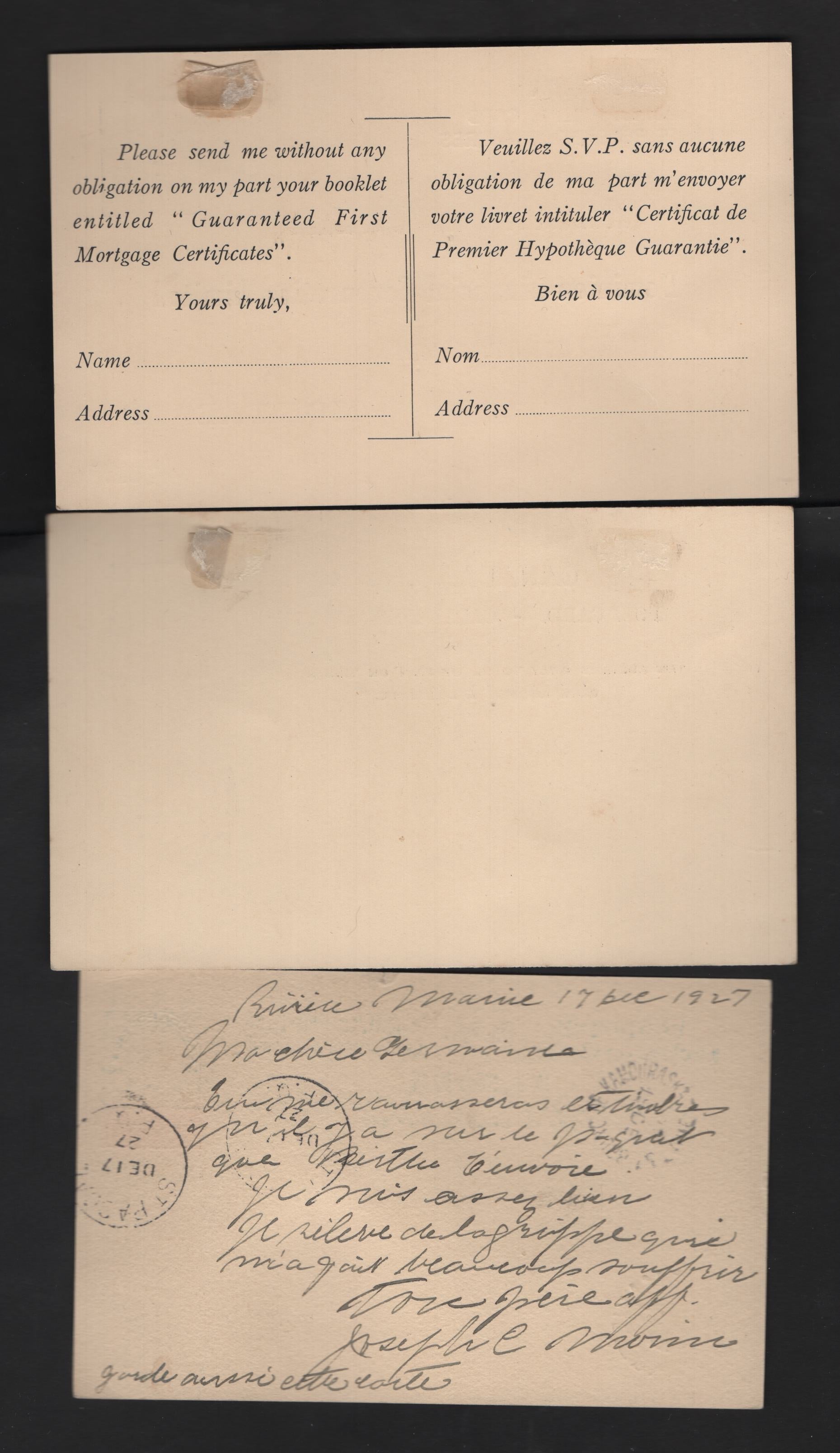 3 very fine used postcards with singles of the 1/2c, 1c & 6c on 2c blue - green King George V from the 1911-1925 Admiral Issues, types 10, 8 & 17, all mint except the surcharge, which is used in 1927, 2 years out of period.