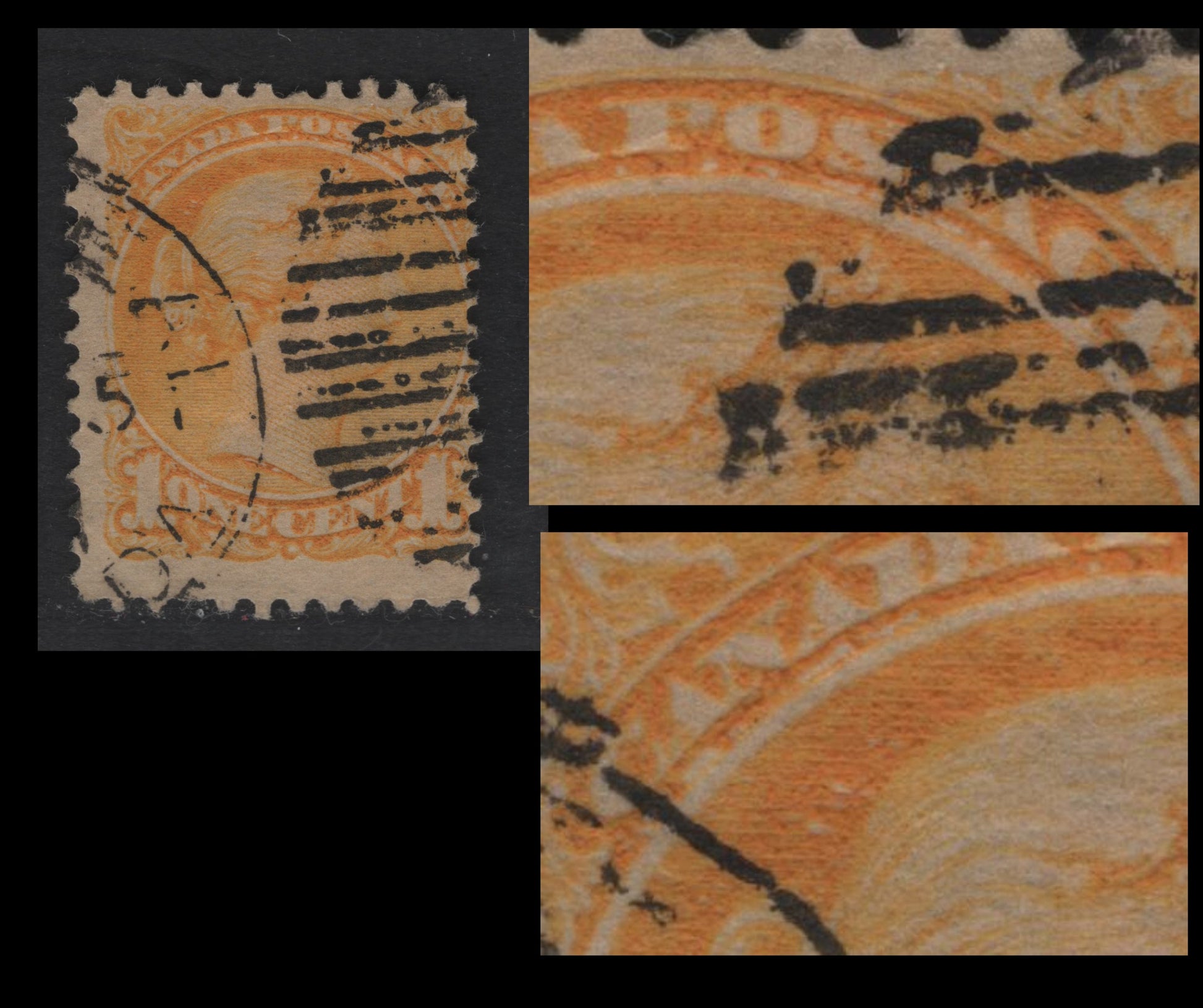 Lot 342 Canada #35i 1c Bright Yellow Queen Victoria, 1870-1893 Small Queen Issue, A Very Good Used Single, Late Montreal Printings, Paper Type LM-C, Perf 12.1x12.25, Dry Inking Under 'Canada Postage'