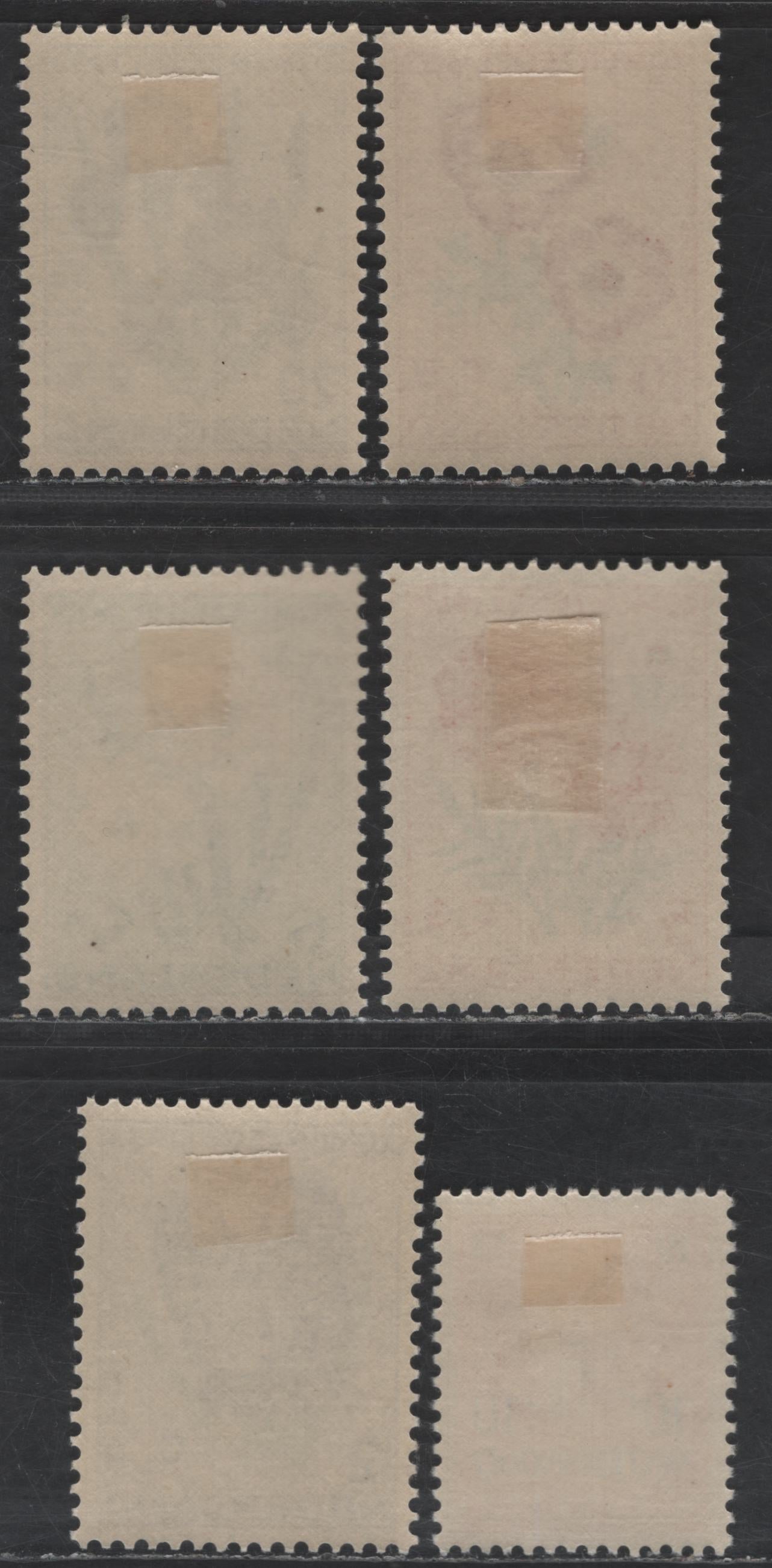 6 VFOG singles of the 10c+10c - 20c+5c orange yellow - deep ultramarine & green Queen Juliana Surcharged - Iris from the 1953 Semi Postal Issues.