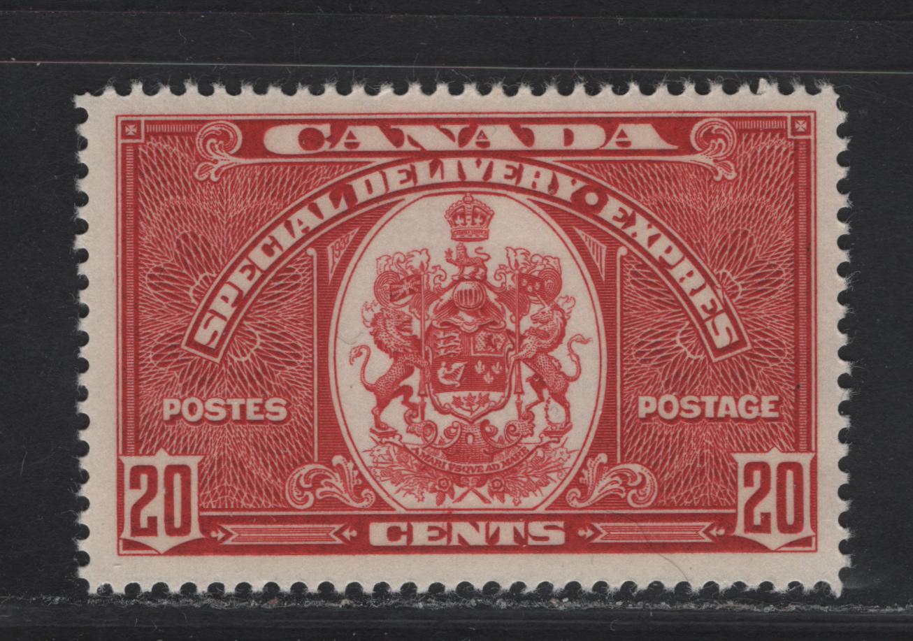 Lot 355 Canada #E8 20c Carmine Emblem, 1939 Special Delivery Issue, A VFOG Single, Paper/Gum CBN-LL, Perf 11.95