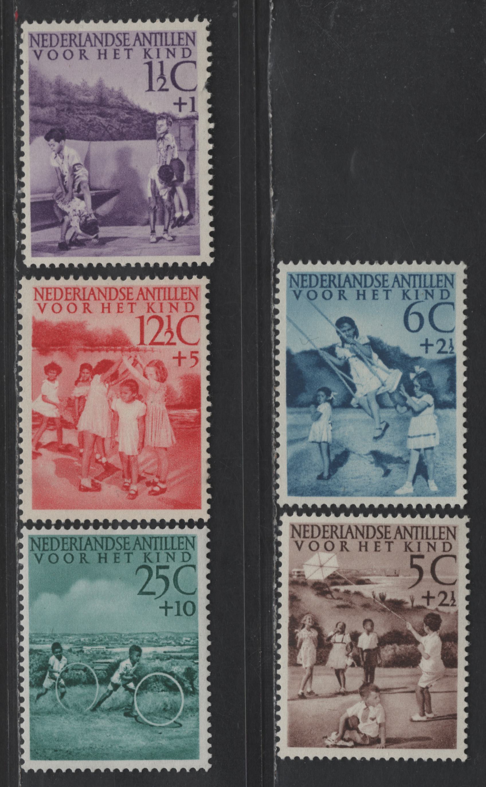 Lot 361 Netherlands Antilles SC#B10-B14 1.5c+1c - 25c+10c Purple - Dull Green Child Welfare, 1951 Semi Postal Issue, 5 F/VFOG Singles