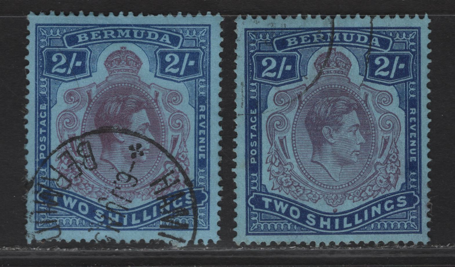 Lot 373 (C)Bermuda SG#116c-d 2/- Purple & Blue on Deep Blue - Dull Purple & deep Blue on Pale Blue King George VI, 1938-1953 KGVI Keyplate Issue, 2 Very Fine Used Singles, Ordinary Paper, Perf 14
