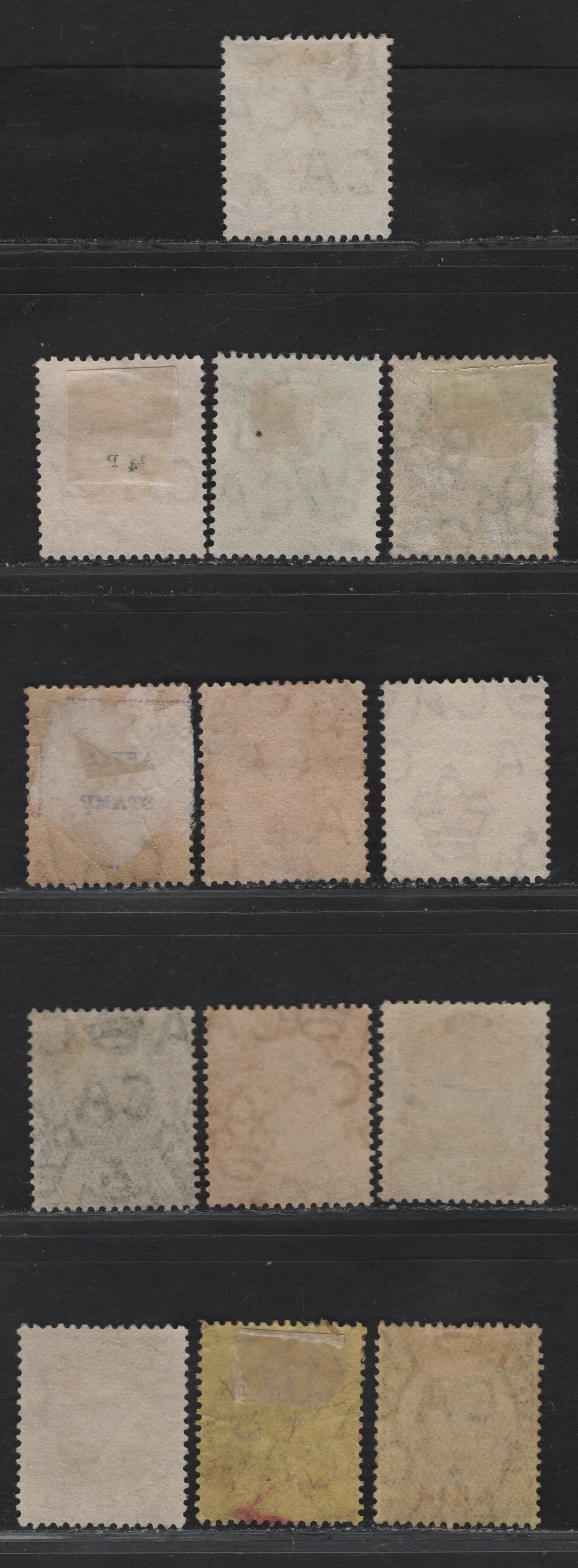 13 fine/very fine used singles of the 1/4d - 3d brown & deep brown - reddish purple on pale yellow Caravel from the 1910-1925 Caravel Definitives, multiple crown ca wmk, comb perf 14.