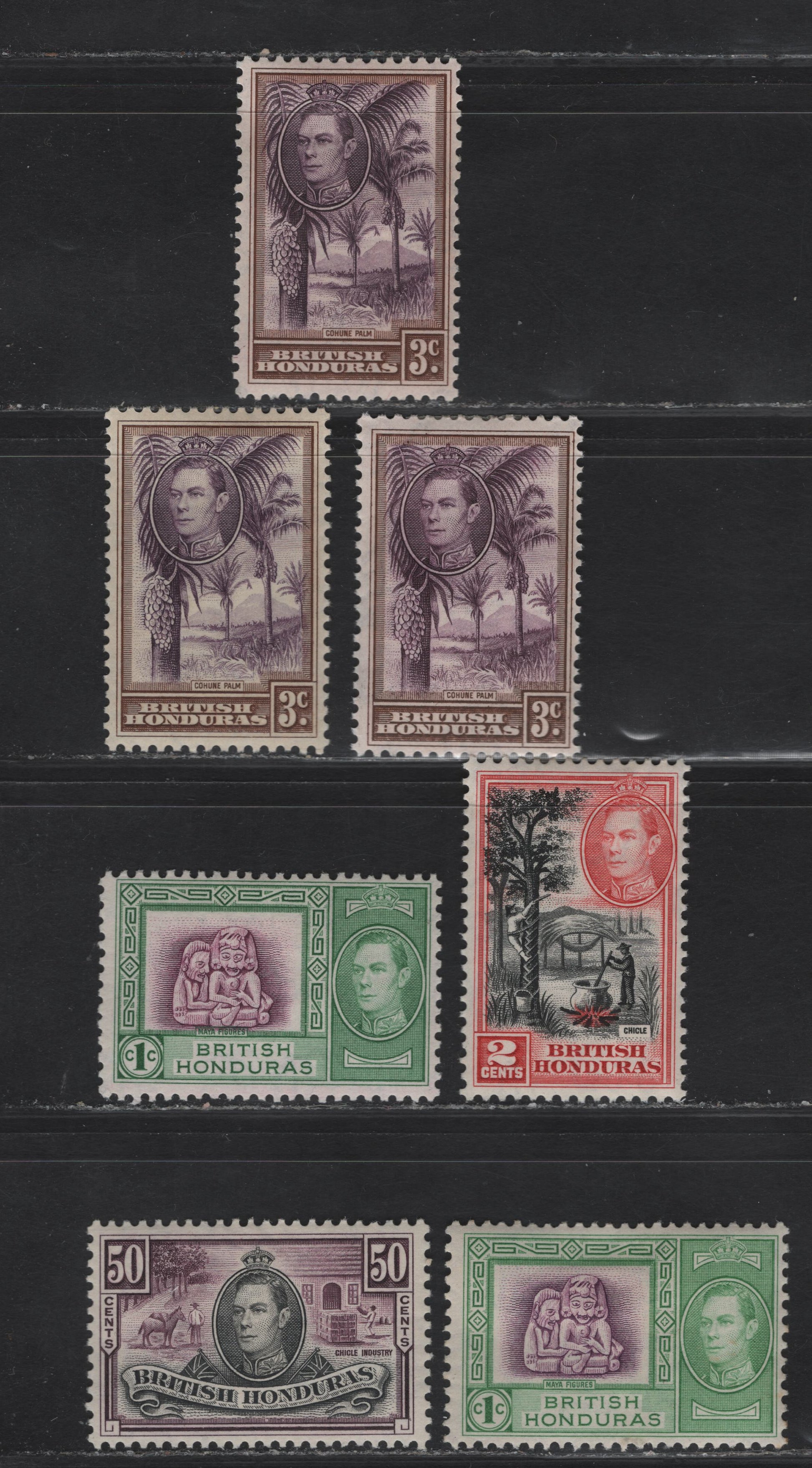 Lot 397 British Honduras SG#150-152, 158 1c - 50c Bright Magenta & Green - Black & Purple Maya Figures - Chicle Industry, 1938-1947 KGVI Pictorial Issue, 4 F/VFOG Singles, 50c is 1938 Printing, Rest Are Wartime or Postwar Printings