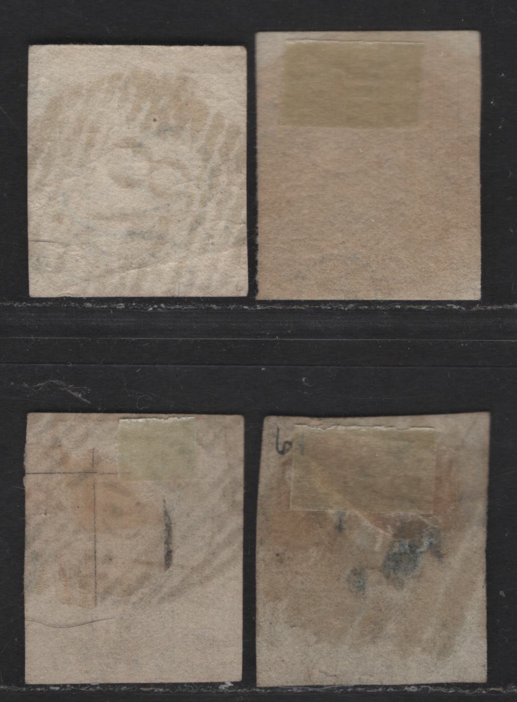 4 ungraded singles of the 10c - 20c brown - blue Leopold I from the 1851-1854 Leopold I Issue, both values on thick & medium path faults, useful for reference.