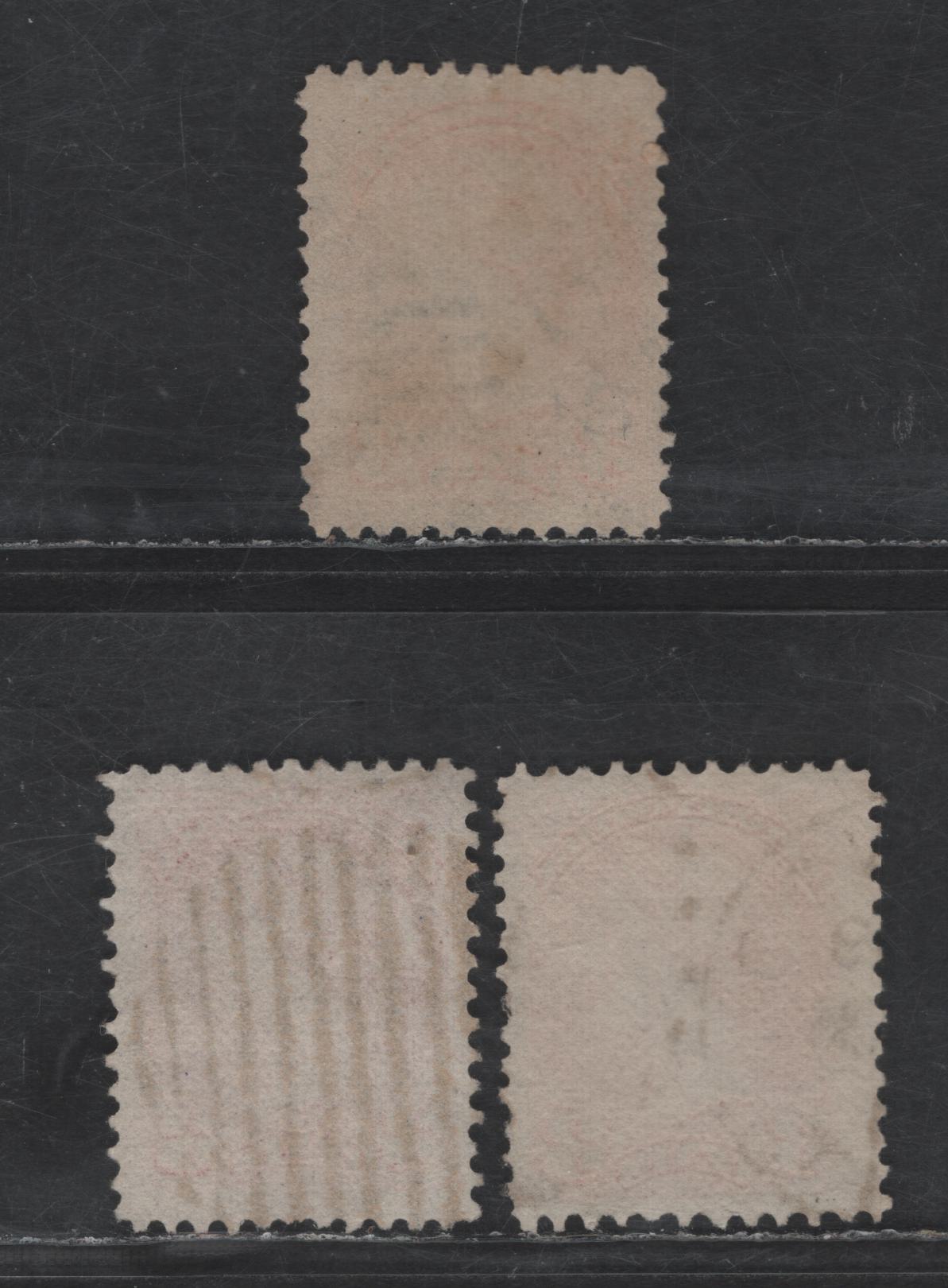 3 fine used singles of the 3c deep bright red orange, deep orange, pale orange red Queen Victoria from the 1870-1893 Small Queen Issue, mid Montreal printings, paper MM-Q, perf 12, no pos. dots.