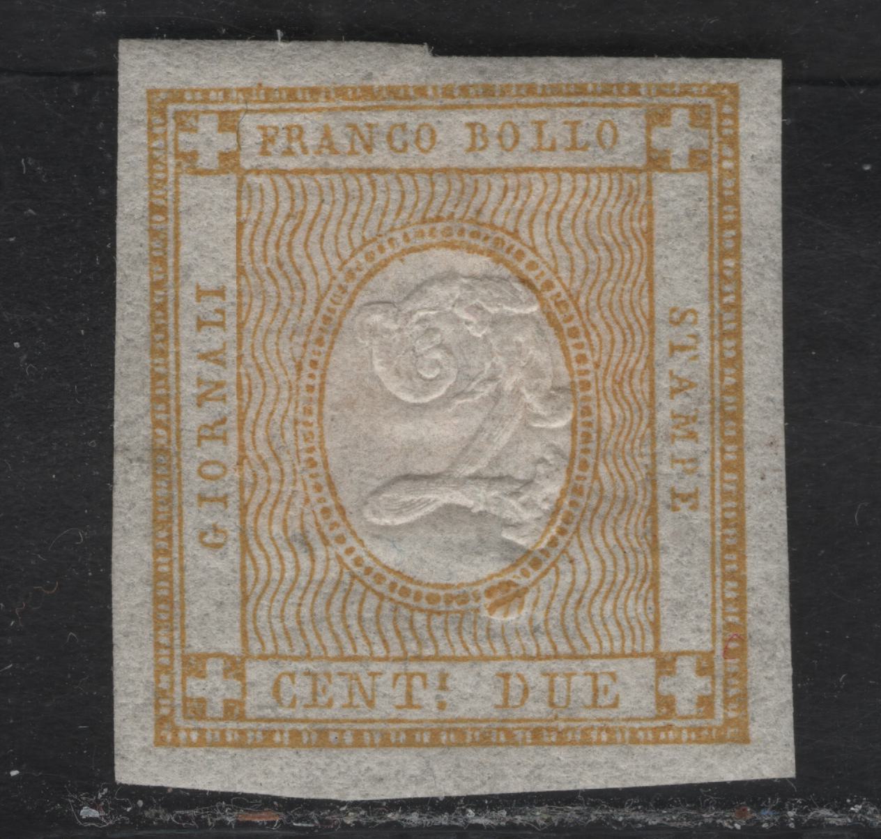 Lot 42 Italy SC#P1 2c Buff Newspaper, 1862 Newspaper Issue, A VFOG Single, Dry Gum, Full Margins On 3 Sides, A Little Close At Top.