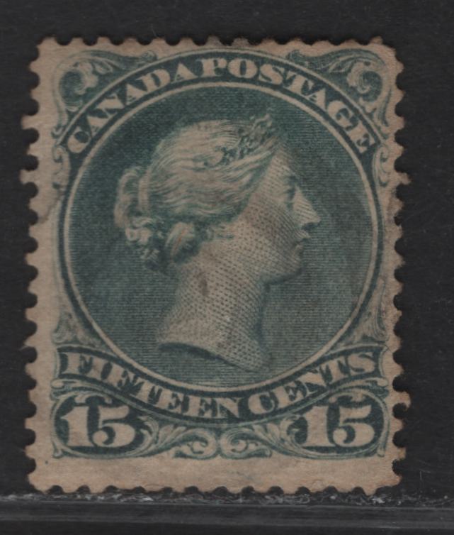 Lot 44 (C) Canada #30b 15c Deep Blue Gray Queen Victoria, 1868-1876 Large Queen Issue, A Fine Used Single, Mid Montreal Printing, Paper MM-B, Two Guide Dots In UL Margin, Perf 12.2x12.1.