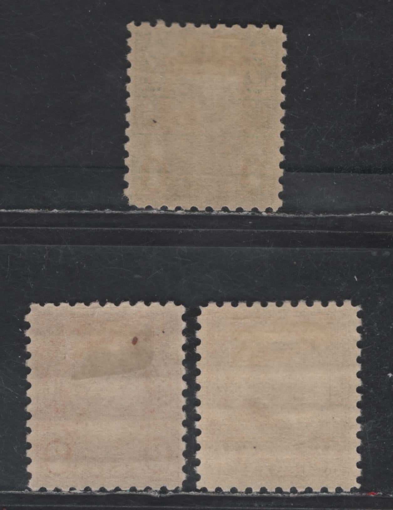 3 VFOG singles of the 1c - 2c green - carmine Franklin - Washington from the 1923-1926 Presidents Issue, perf 10, stamp designs 19.5x22.5mm.