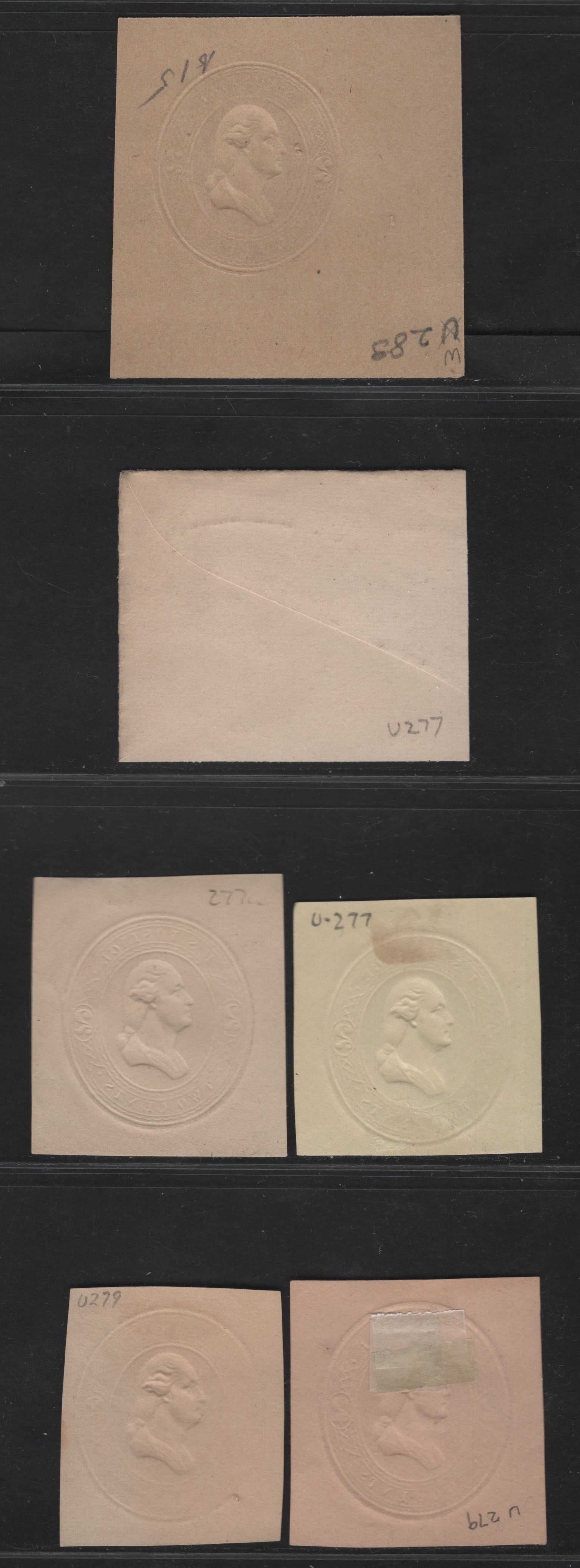 Lot 47 United States SC#U277-U279, U281, W233 2c Brown Jackson, 1884-1886 Heads Issue, 6 Fine/Very Fine/Extremely Fine Unused Singles, Die 1 on Manilla